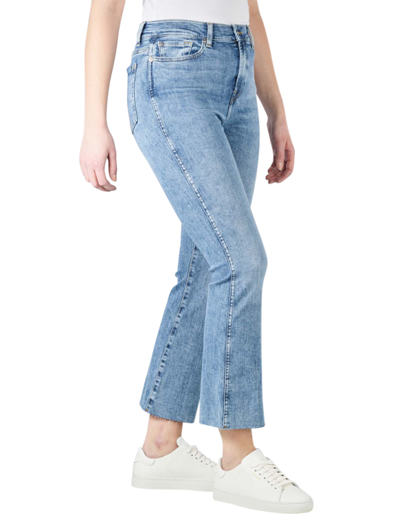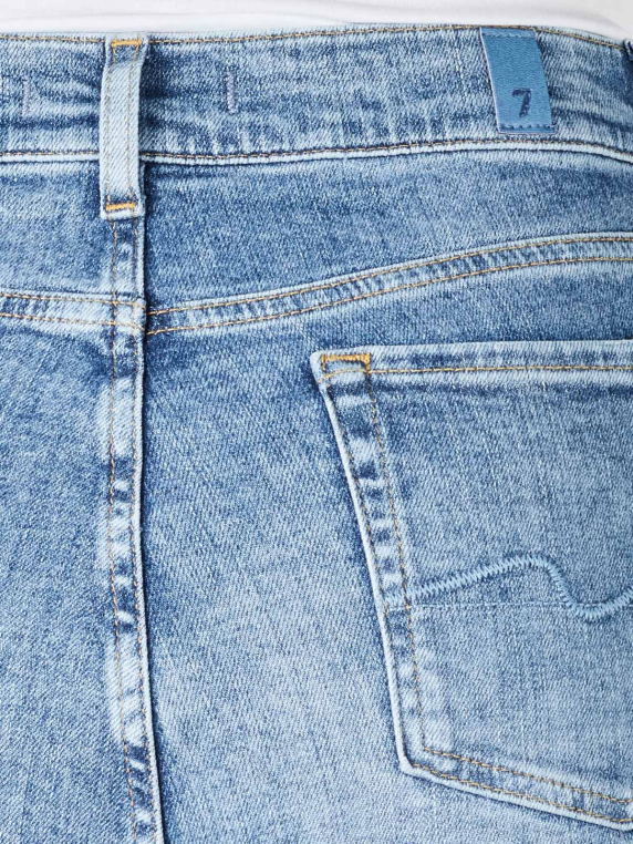 Le jeans clair de la marque 7 For All Mankind, dans une couleur bleu clair attrayante, se ferme avec une fermeture éclair classique. Cette coupe est exceptionnellement stylée. La silhouette du jean cinq poches correspond à une coupe slim et se prolonge par une coupe plus large au niveau des jambes. La hauteur de la taille est moyenne. Le mélange de matières de 97 % de coton et 3 % d'élasthanne promet un port agréable.