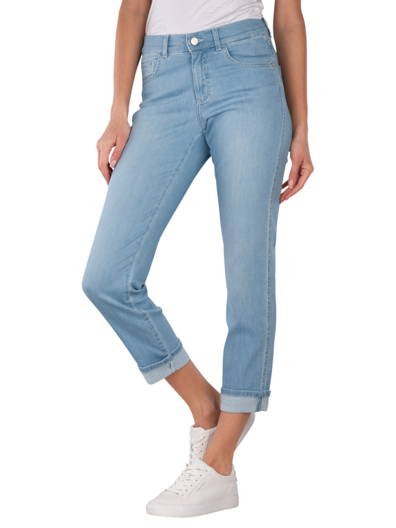 Les jeans Darleen Straight Fit Crop en bleu clair offrent une coupe droite avec une taille mi-haute. Ils disposent d'un style classique à cinq poches et d'une fermeture éclair. La part d'élasthanne assure une liberté de mouvement et un confort. Ces jeans conviennent à diverses activités de loisirs et se combinent de manière polyvalente. Instructions d'entretien : lavage délicat à 30°C, ne pas blanchir. Certifié Eco & Fair.