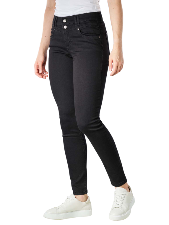 Le jeans Skinny Button d'Angels pour femme a une taille haute et des cuisses et des jambes ajustées. Pour vous offrir un grand confort, le mélange de matières de 92 % de coton et 6 % de polyester contient en plus 2 % d'élasthanne. Le procédé de lavage Knotwashed, où les pierres ponces sont remplacées par des nuds en plastique recyclé, est bon pour l'environnement. Le jeans de style cinq poches a deux boutons et une fermeture à glissière.
