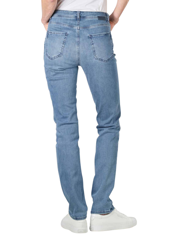 Le jeans Mary Slim Fit de Brax pour femmes dans le coloris Stone Blue est de style classique à cinq poches et convainc par sa taille haute et sa jambe droite et étroite. Grâce à l'utilisation d'un denim de coton de production durable avec une part de stretch, les jambes étroites suivent tous les mouvements, offrent un grand confort et soulignent en outre la silhouette féminine. Le jean pour femmes est lavable à 30 °C sur cycle délicat.