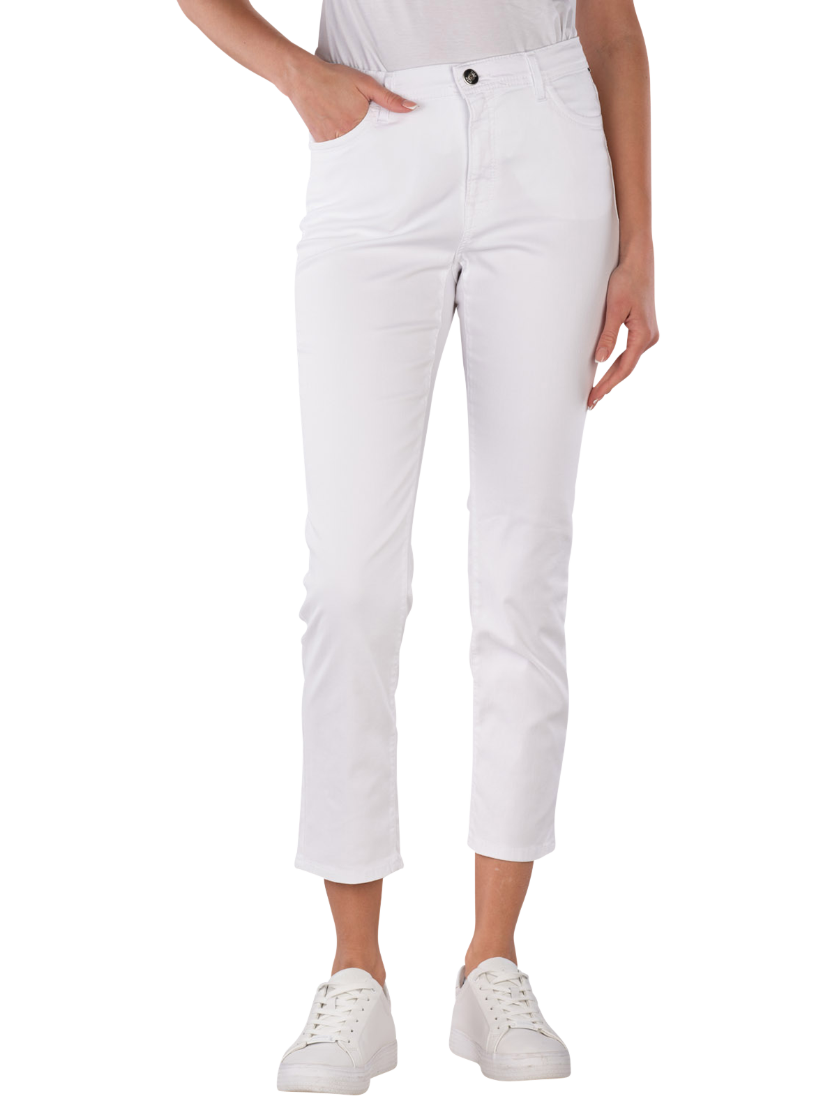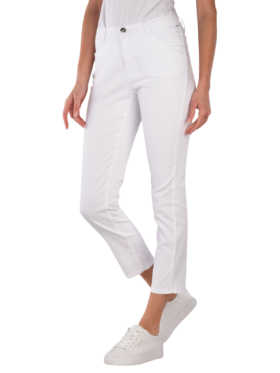 Le Brax Mary S Jeans Slim Straight Fit Cropped en blanc offre une taille haute et une coupe droite. Il est fabriqué dans un matériau léger et extensible qui permet une liberté de mouvement. Avec son design à cinq poches et sa fermeture éclair, il est pratique et élégant. Ce jean convient à diverses occasions et peut être combiné de manière polyvalente. Facile d'entretien à 30°C en cycle délicat.