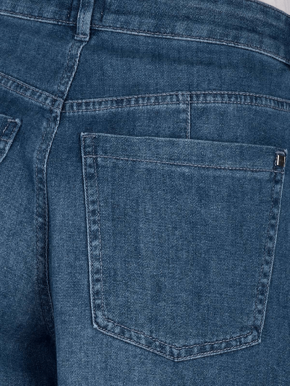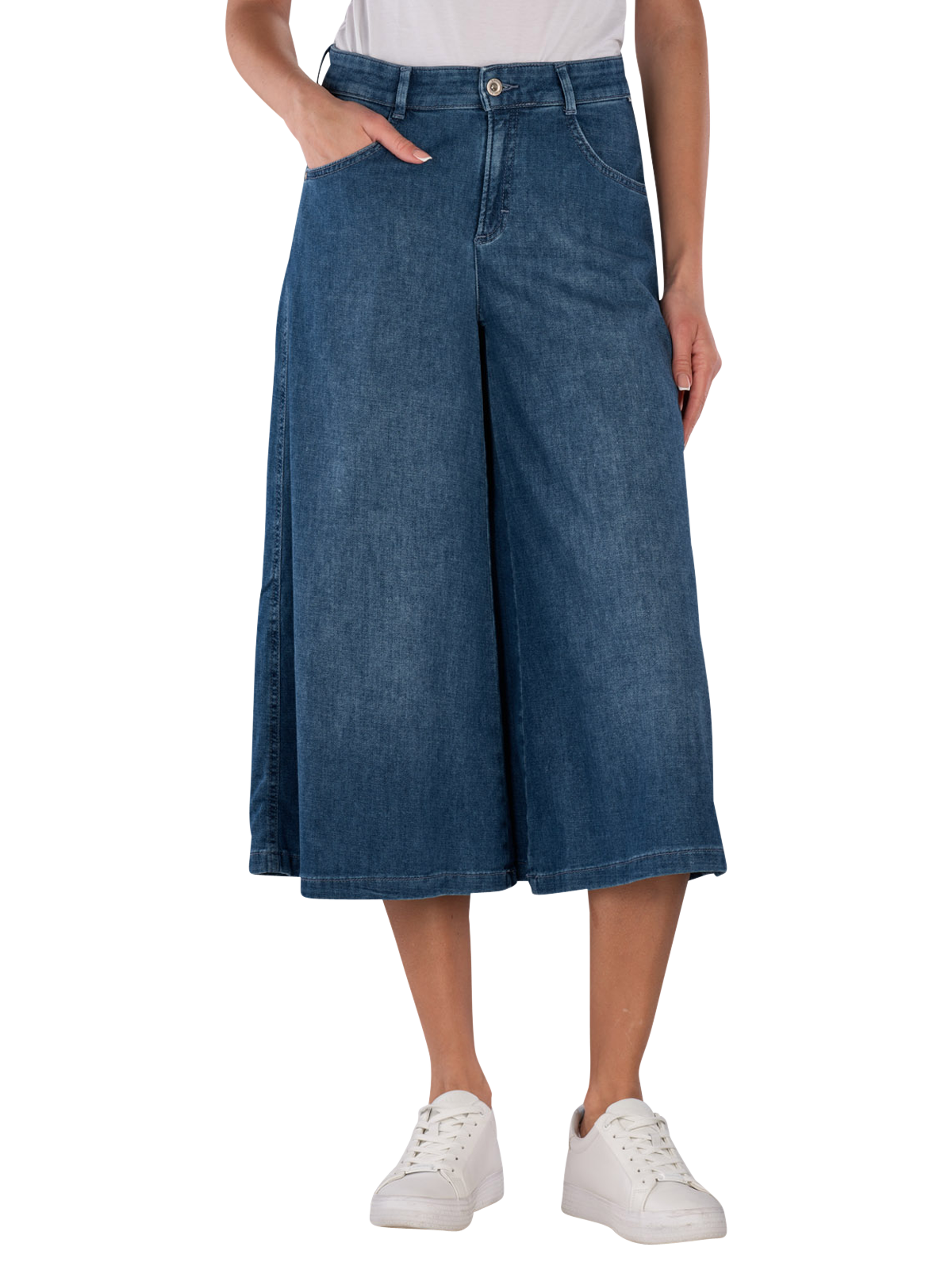 Le Brax Melli S Jeans Wide Leg Culotte en bleu moyen offre une coupe large au niveau des jambes et une taille moyenne à haute. Elle est fabriquée dans un tissu fin et extensible qui permet une liberté de mouvement. Ce jean convient à diverses occasions et peut être combiné de manière polyvalente. La fermeture éclair assure un maintien sûr, tandis que l'aspect Five-Pocket offre des poches pratiques.