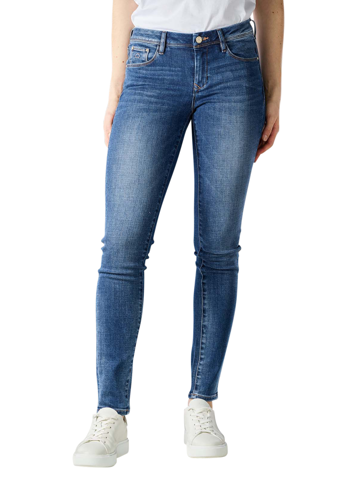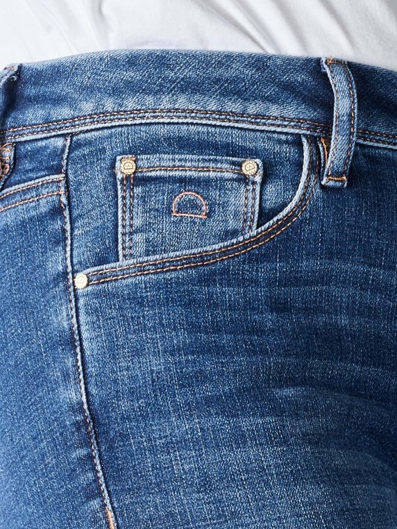 Le Dawn Denim Mid Sun Jeans Slim Fit est un jean décontracté à cinq poches de couleur bleu moyen. Avec sa hauteur de taille normale et sa coupe droite sur les jambes, il convainc notamment grâce à son parfait ajustement et par le confort de port offert. La teneur en stretch garantit une liberté de mouvement illimitée. Les jeans sont fabriqués selon le programme écologique spécial du label, dans le cadre duquel seul du coton biologique est utilisé. L'entreprise contribue ainsi activement à la protection de l'environnement.