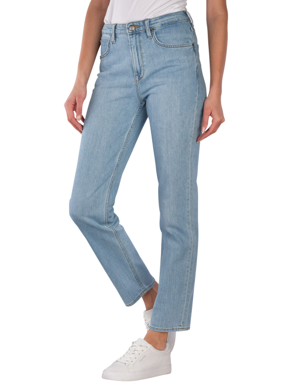 Le Lee Carol Jeans Straight Fit Light Retreat offre une coupe droite avec une taille haute et est de couleur bleu clair. Il dispose d'une fermeture éclair pratique et d'un design classique à cinq poches. La part de stretch assure un confort supplémentaire et une liberté de mouvement. Ce jean convient à diverses occasions et se combine de manière polyvalente, tandis que le lavage clair donne un look frais.