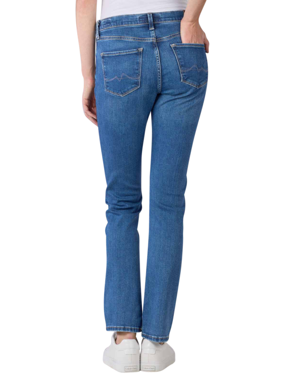 Le Mid Grace de Pepe Jeans est coupé droit et ajusté. Le jean pour femmes se situe à hauteur moyenne sur les hanches et se ferme avec une fermeture éclair. Ce pantalon fait partie du programme Pepe Future, qui se distingue par une production responsable et durable. Ainsi, le jean est également composé à 83 % de coton biologique, provenant de l'Initiative Better Cotton.