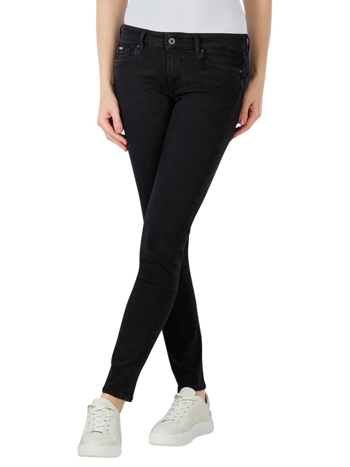 Soho Jeans de Pepe en Skinny Fit pour femme, dans la teinte « Washed Black », en cinq poches, style casual business. Avec fermeture éclair et composante stretch, hauteur de taille moyenne et décolleté étroit, coupe très serrée sur la cuisse. Composition du matériau 80% coton, 17% polyester et 3% élasthanne, lavable à 40°C.
