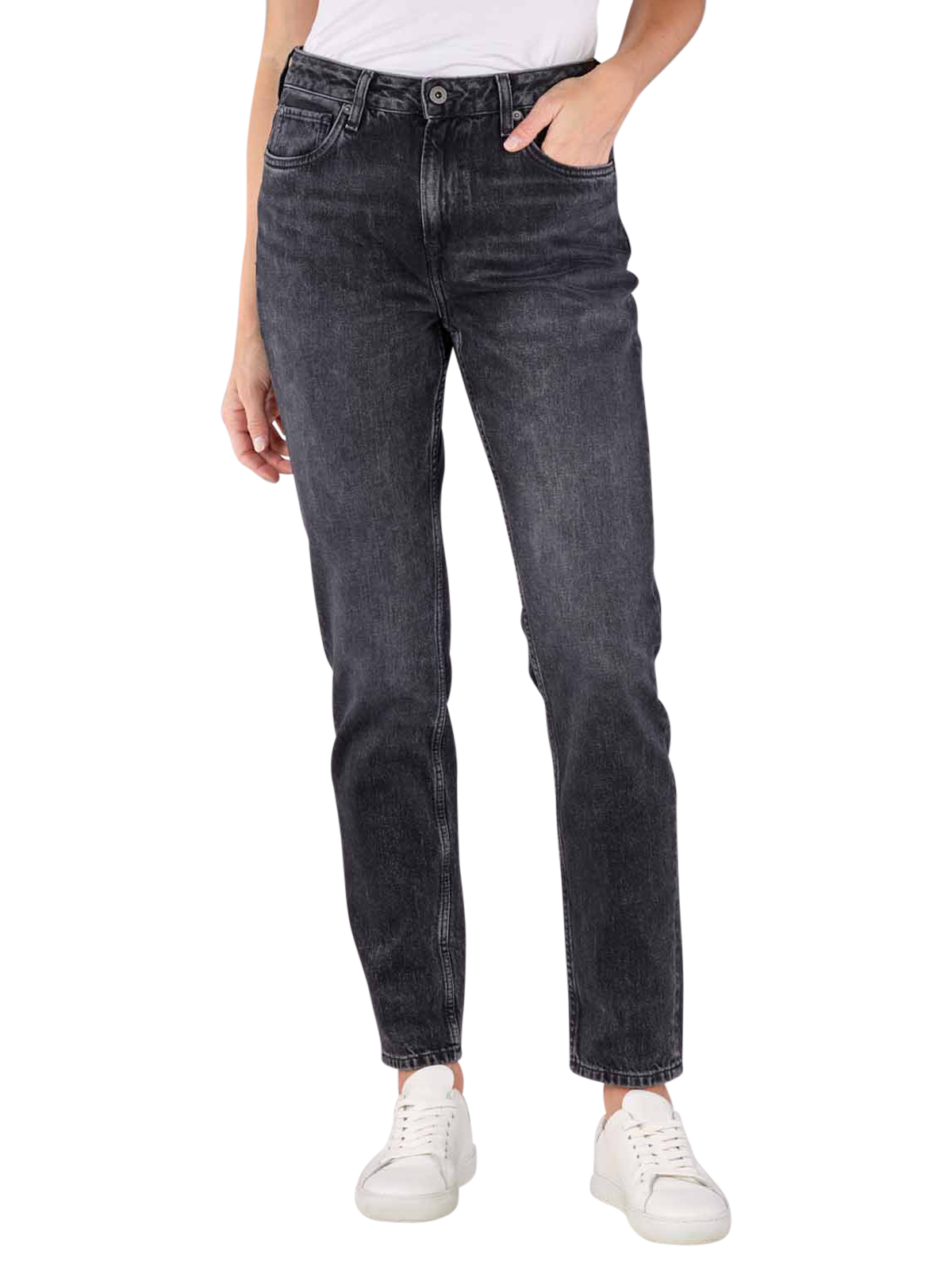 Le jeans Pepe High Violet en Mom Fit est de couleur noire et combine le style 5 poches avec une taille haute et des jambes droites et confortables. Fabriqué dans un denim de coton élastique de haute qualité, ce jean pour femme offre un excellent confort de port, tandis que les délavages discrets lui donnent un look stylé. Un autre point positif est la facilité d'entretien, car le jeans peut être lavé en machine sans hésitation.