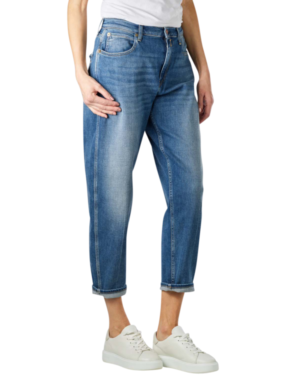 Les jeans pour femmes de Replay sont de véritables jeans bien-être. La largeur agréable au niveau des fesses et des cuisses y contribue, mais aussi le mélange de coton doux pour la peau, qui a été mélangé avec des fibres élastiques d'élasthanne pour une plus grande liberté de mouvement. Les jeans sont coupés dans le style "tapered" et se terminent en cône sur les jambes raccourcies. Du point de vue optique, les jeans marquent des points avec un délavage branché, des passants de ceinture, cinq poches et une fermeture éclair avec bouton métallique.