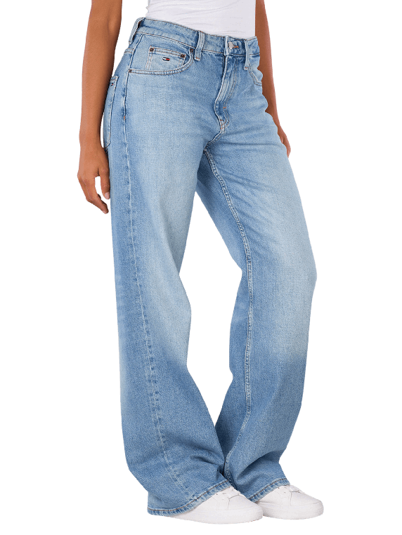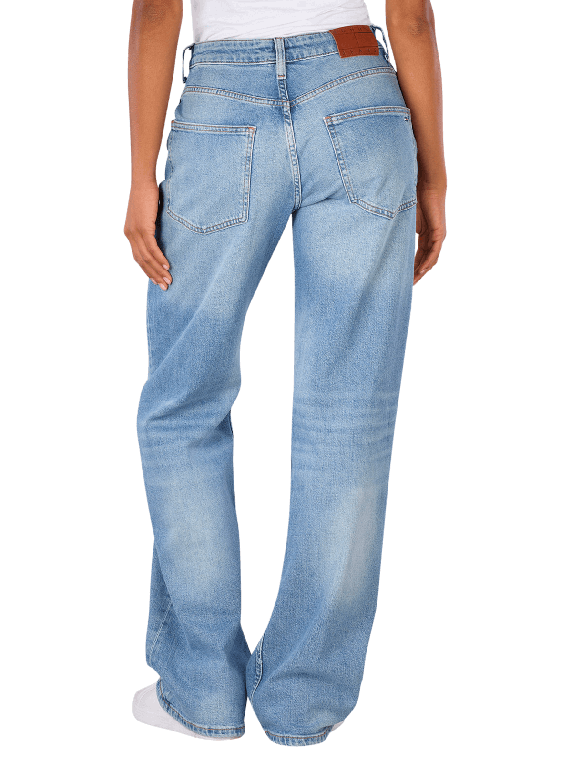 Les jeans Tommy Jeans Mia Mid Rise Relaxed Straight Fit en bleu clair offrent une coupe de jambe large et une taille moyenne. Ces jeans pour femmes combinent une coupe décontractée avec un design classique à cinq poches. La fermeture éclair permet une manipulation facile. Avec sa part d'élasthanne, elle offre un confort et une liberté de mouvement supplémentaires. Idéale pour le quotidien ou des occasions décontractées, elle se combine de manière polyvalente.