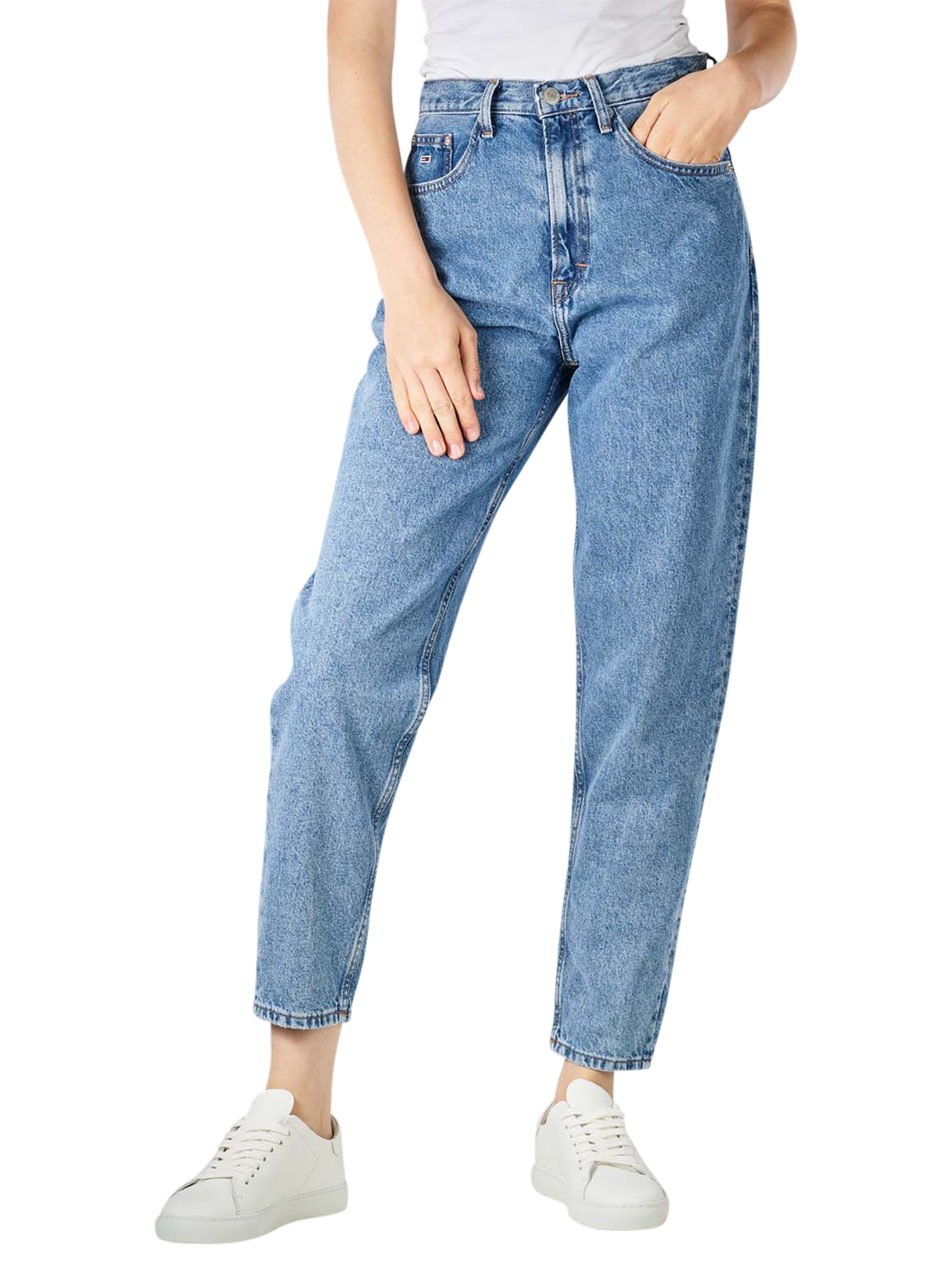 Le jean mom taille haute de la marque de mode Tommy Hilfiger présente une silhouette confortable et décontractée. Conçu dans un bleu jean classique, le pantalon de la ligne Tommy Jeans, qui présente un mélange de taille haute, de jambes souples et d'ourlet resserré, est un allrounder iconique de la mode. Associé à des blazers oversize, des bottes, des sneakers ou des sweat-shirts imprimés, il permet de créer en un clin d'il un look iconique à la manière de la princesse Diana. Le jean cinq poches est fabriqué en pur coton. Il est très confortable et arbore le patch emblématique de la marque ainsi qu'une couture emblématique.