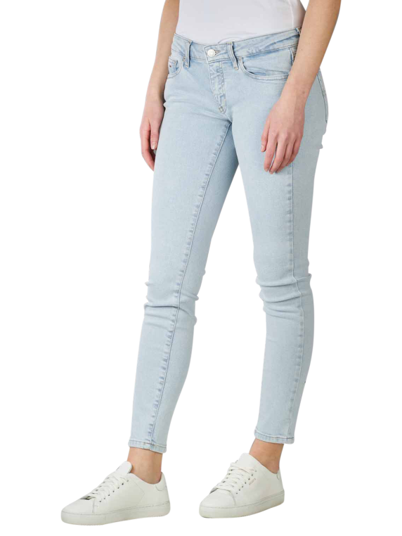 Les jeans pour femmes se ferment facilement et confortablement avec une fermeture éclair et un bouton de pantalon. Grâce à sa teneur élevée en coton, le pantalon est à la fois doux pour la peau, respirant et facile d'entretien. Il peut donc être lavé en cycle délicat à 30 degrés. Le séchage au sèche-linge est possible à basse température. Il convient toutefois d'éviter un repassage trop chaud.