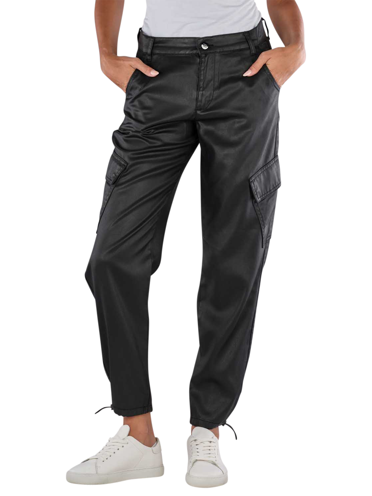 Les Angels Smooth Coating Alma Grop Cargo Pants en noir sont des pantalons à la mode pour les femmes. Avec leur coupe de jambes droite et leur hauteur de taille moyenne, ils offrent un confort de port décontracté dans une coupe relax. Les Cargo Pants sont en 100% Lyocell et ont une épaisseur de tissu standard. Ils convainquent par leur fermeture éclair et ne contiennent pas de stretch. Conseils d'entretien : Lavage délicat à 30°C, ne pas blanchir. Parfait pour un look décontracté.