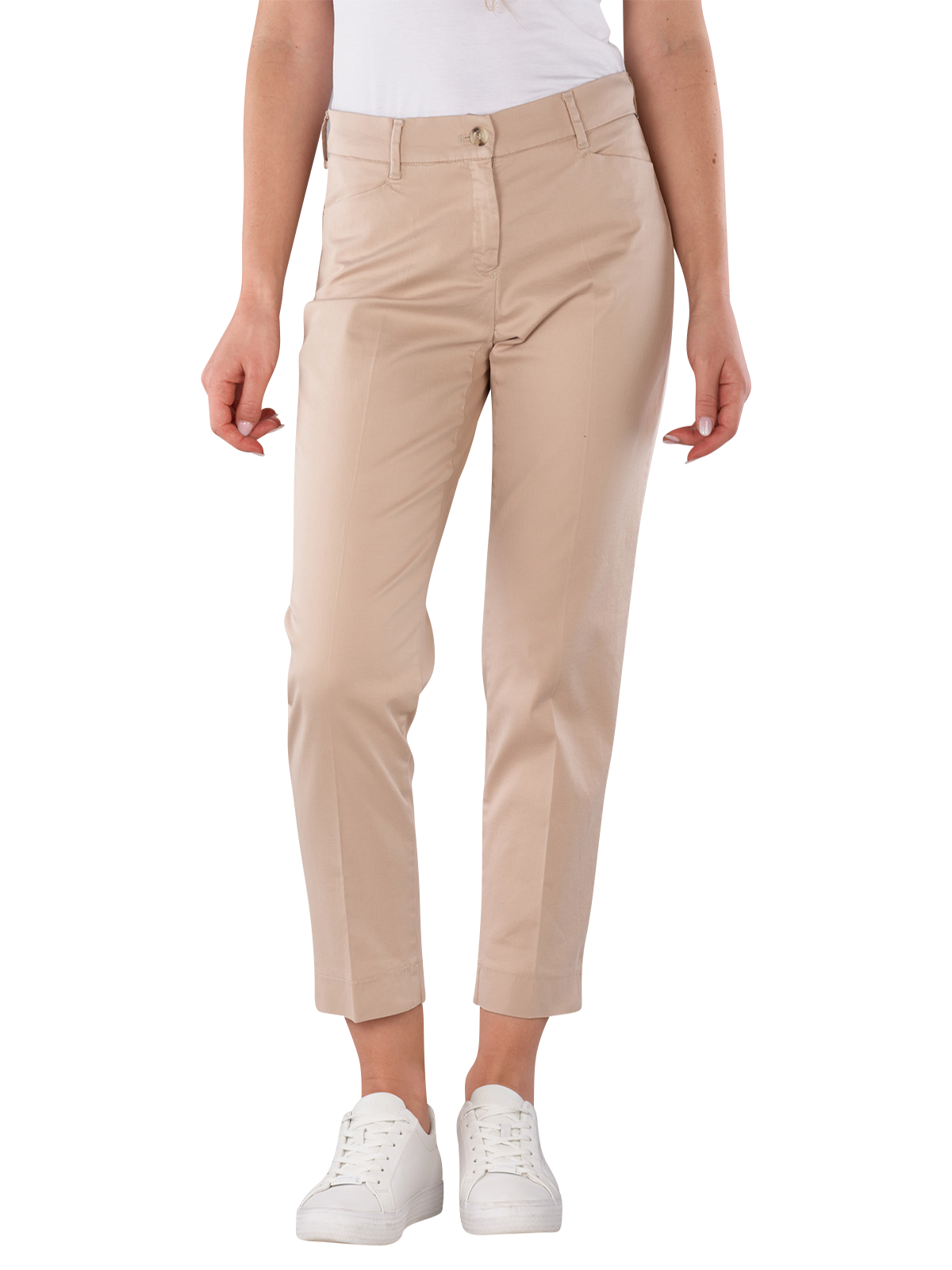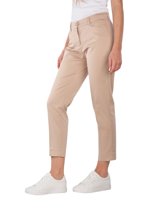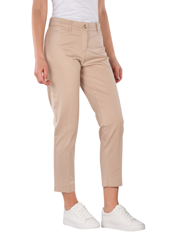 Le Brax Mara S Chino Regular Fit en Beige offre une coupe droite et une hauteur de taille moyenne. Ce pantalon chino pour femmes combine un tissu léger avec une part d'élasthanne, ce qui permet une liberté de mouvement. La fermeture éclair permet un enfilage et un retrait faciles. Il convient à diverses occasions et se combine de manière polyvalente, ce qui en fait un ajout pratique à toute garde-robe.