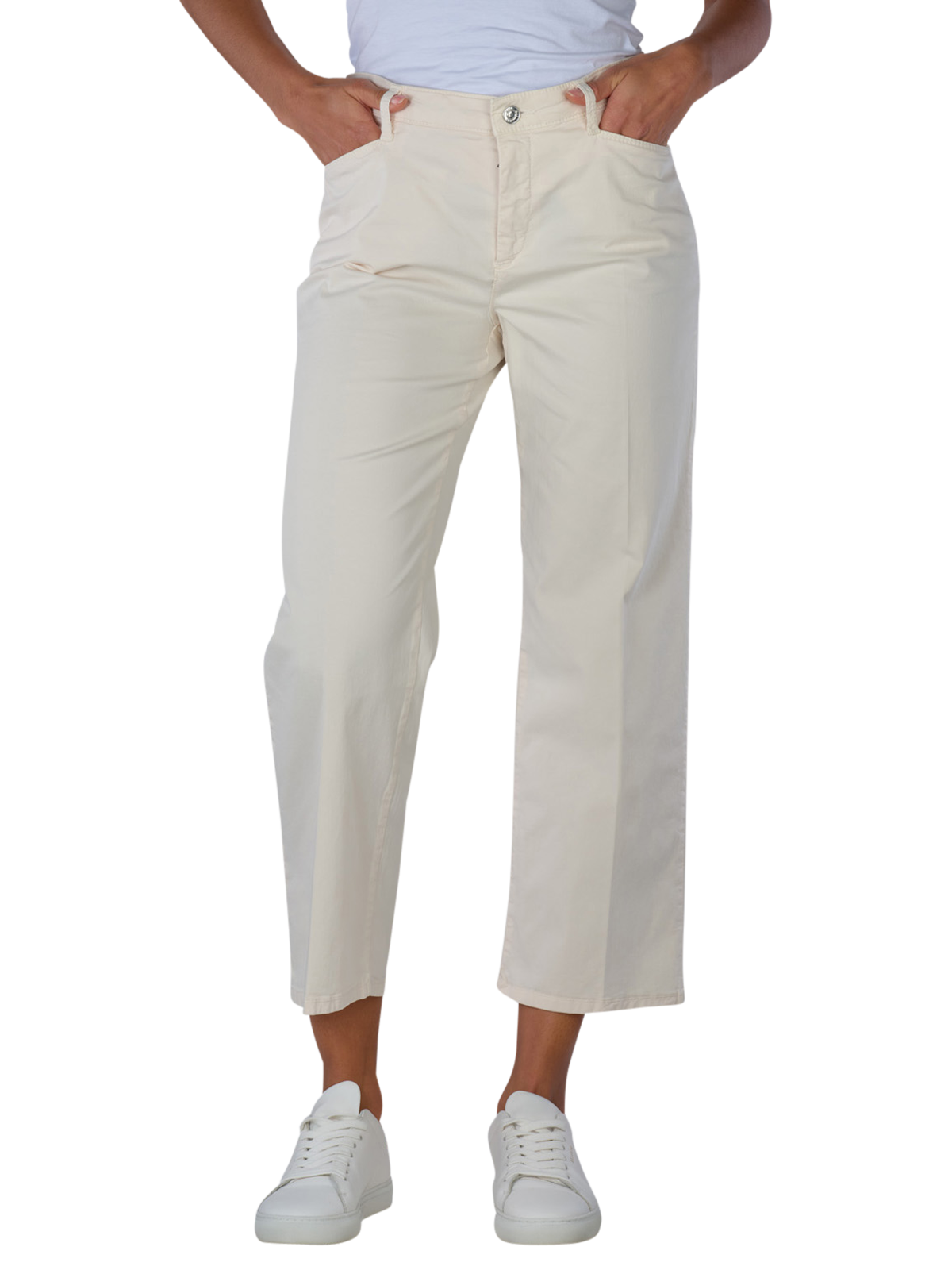 Découvrez le Mac Chiara Cropped Pants en gabardine vanille - la combinaison parfaite de style et de confort pour les femmes soucieuses de la mode. Avec une coupe de jambe large et une hauteur de taille moyenne, ce chino offre un look décontracté qui se prête à de nombreux styles. Le tissu fin avec une part de stretch assure une liberté de mouvement et un confort agréable. Facile d'entretien avec un lavage délicat à 30°C, le pantalon est composé de 97% de coton et de 3% d'élasthanne. Optez pour une mode durable - Protect our planet !