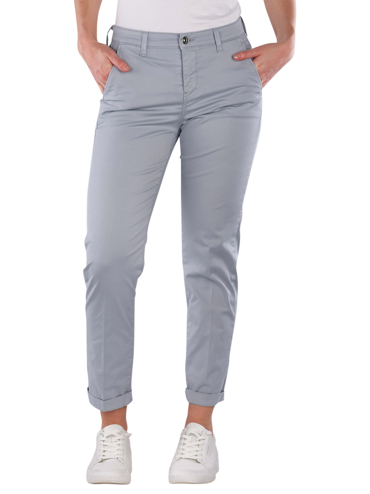 Le Mac Chino Turn Up Slim Fit en Cahmere Blue offre une coupe étroite au niveau des jambes et une taille moyenne. Ce pantalon 7/8 pour femmes combine une coupe slim moderne avec un tissu léger et extensible qui permet une liberté de mouvement. La fermeture éclair assure un maintien sûr. Idéal pour des occasions décontractées ou au bureau, le Chino se combine de manière polyvalente et offre un confort toute la journée.