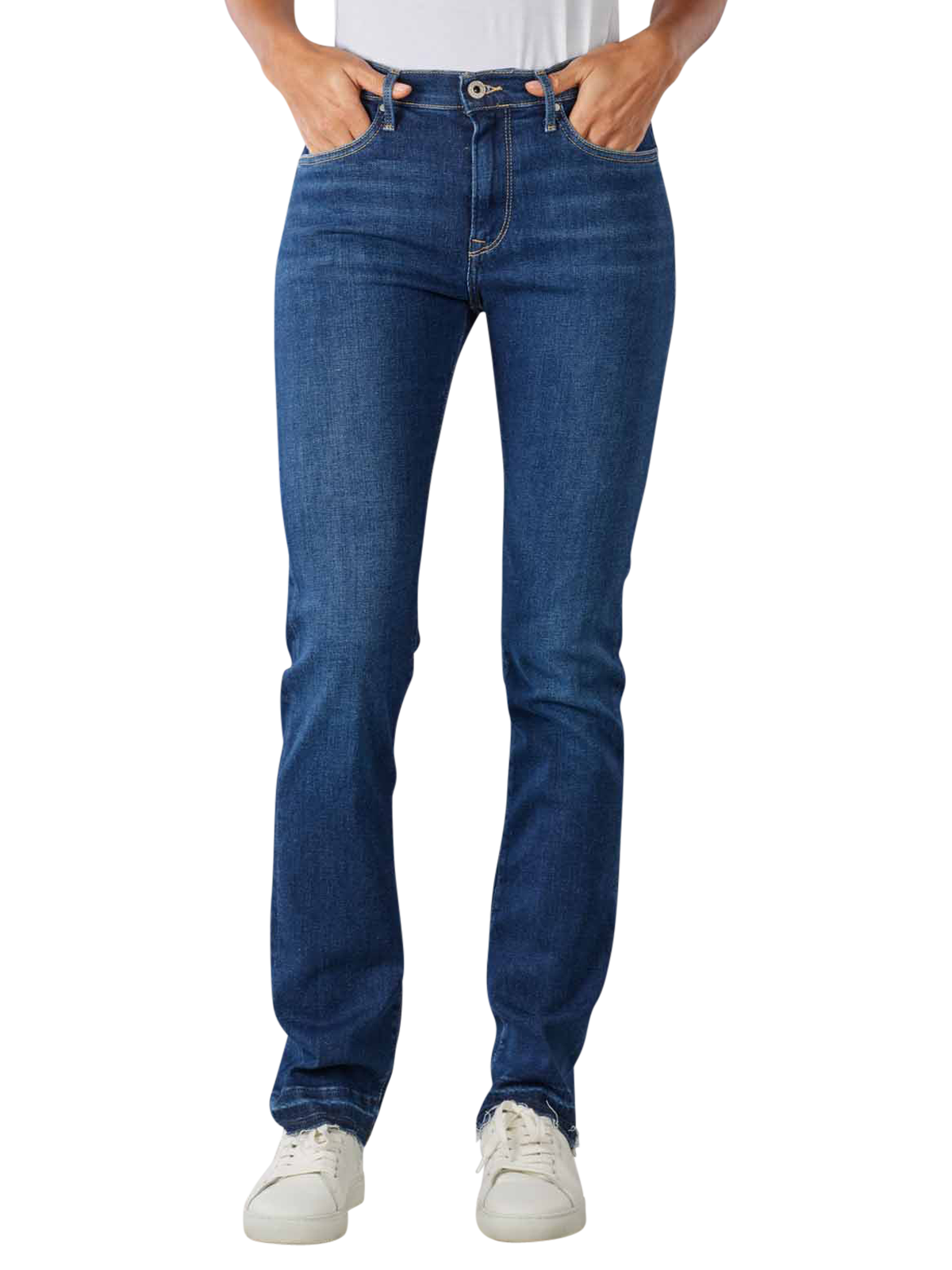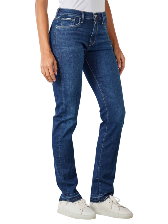 Ce jean de Pepe Jeans London en couleur bleu foncé est un superbe jean cinq poches au style décontracté. Le jean est coupé dans une coupe slim fit et possède une jambe droite ainsi qu'une taille moyenne. Ce jean Pepe est fabriqué selon le programme de durabilité Pepe Future à partir de 90 % de coton, 6 % de polyester et d'une part d'élasthanne de 4 %. Il peut être lavé en machine à 40 degrés dans un cycle de lavage normal.