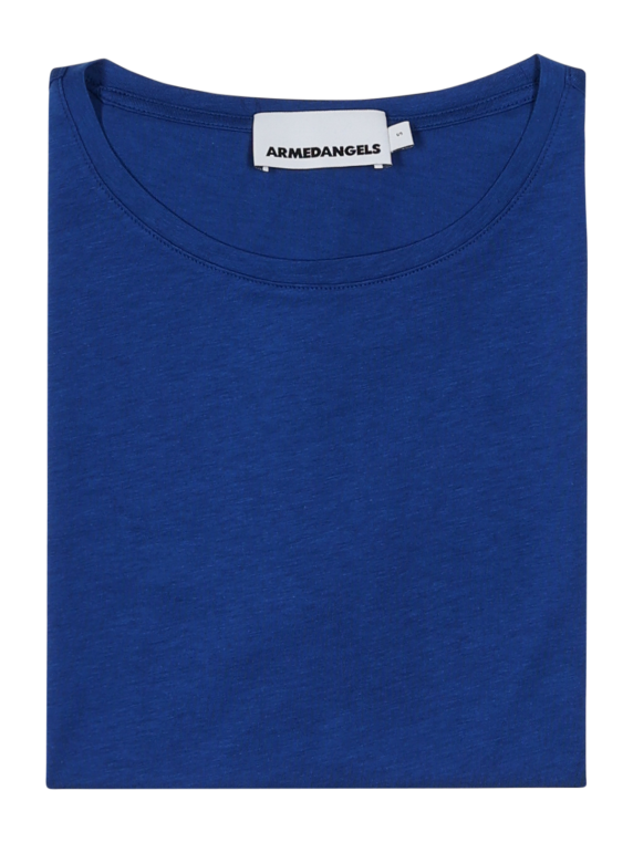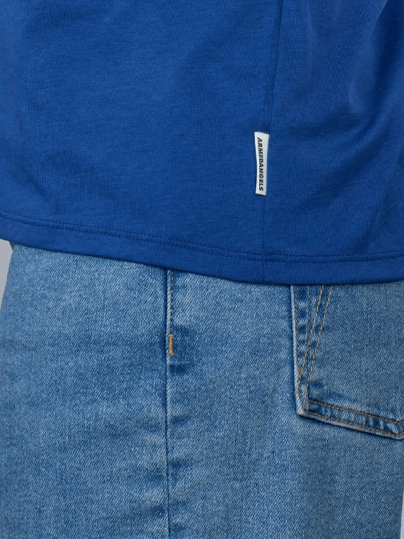 Le T-shirt Armedangels Jilaana en Lapis Blue est un vêtement élégant et respectueux de l'environnement pour les femmes soucieuses de la mode. Ce T-shirt bleu moyen se distingue par son col rond classique et convient parfaitement à la vie quotidienne. Fabriqué à 67% en lyocell et à 33% en coton, il est très confortable à porter. Il doit être lavé en cycle délicat à 30 degrés et ne doit pas être blanchi. Un must-have pour les garde-robes durables.