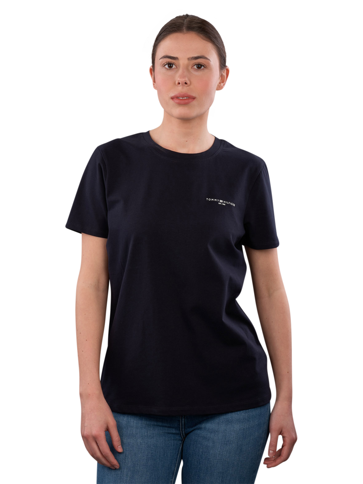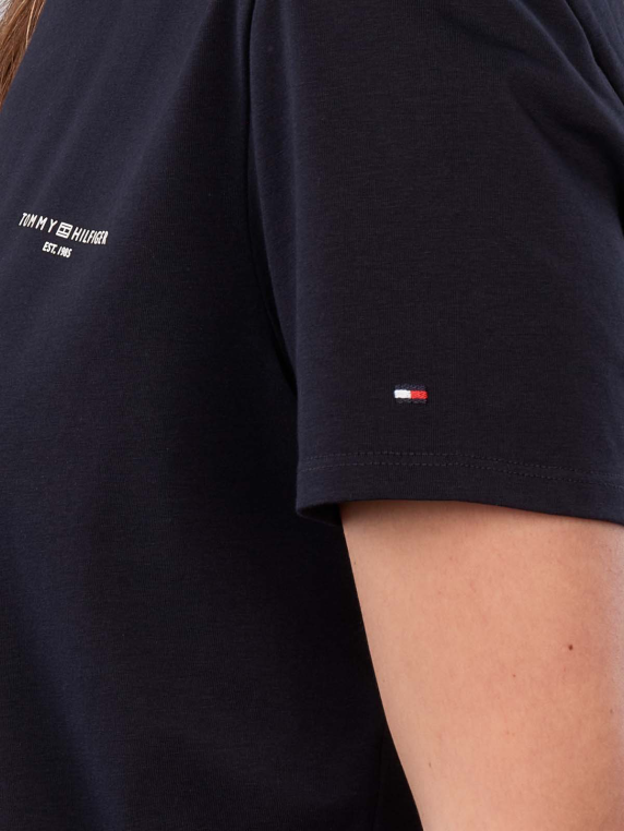 Le T-shirt Tommy Hilfiger 1985 Regular Fit en couleur bleu foncé offre un col rond classique et une coupe confortable pour les femmes. Fabriqué à 95 % en coton et 5 % en élasthanne, il assure un confort agréable à porter. Il est facile d'entretien et peut être lavé à 30 °C en cycle délicat. Ce T-shirt convient à des combinaisons polyvalentes et complète toute garde-robe.