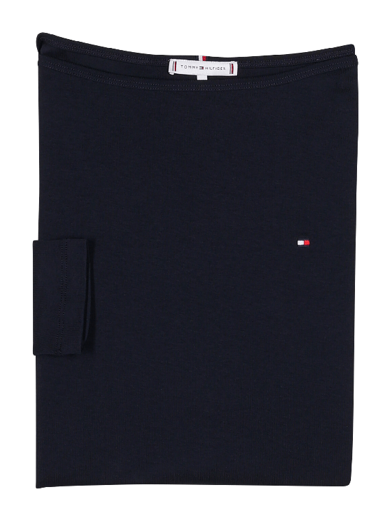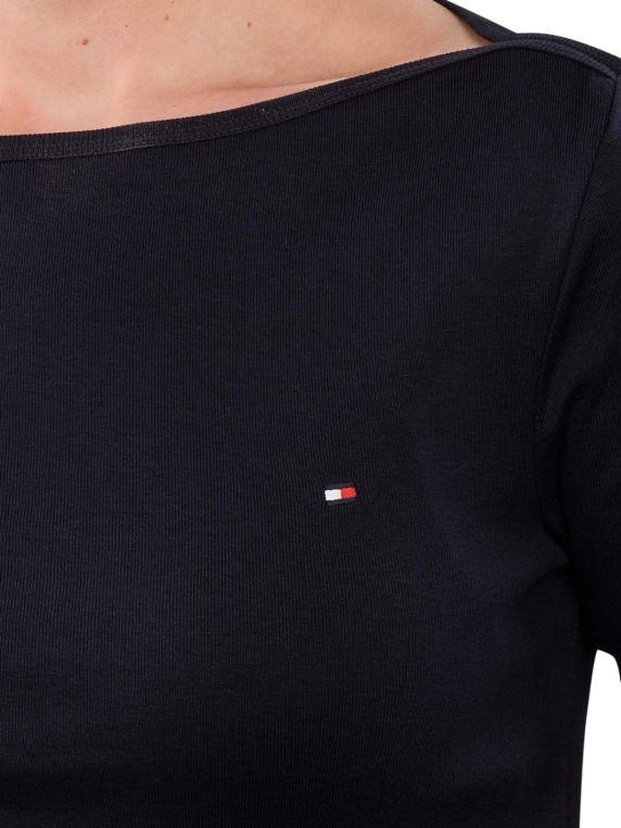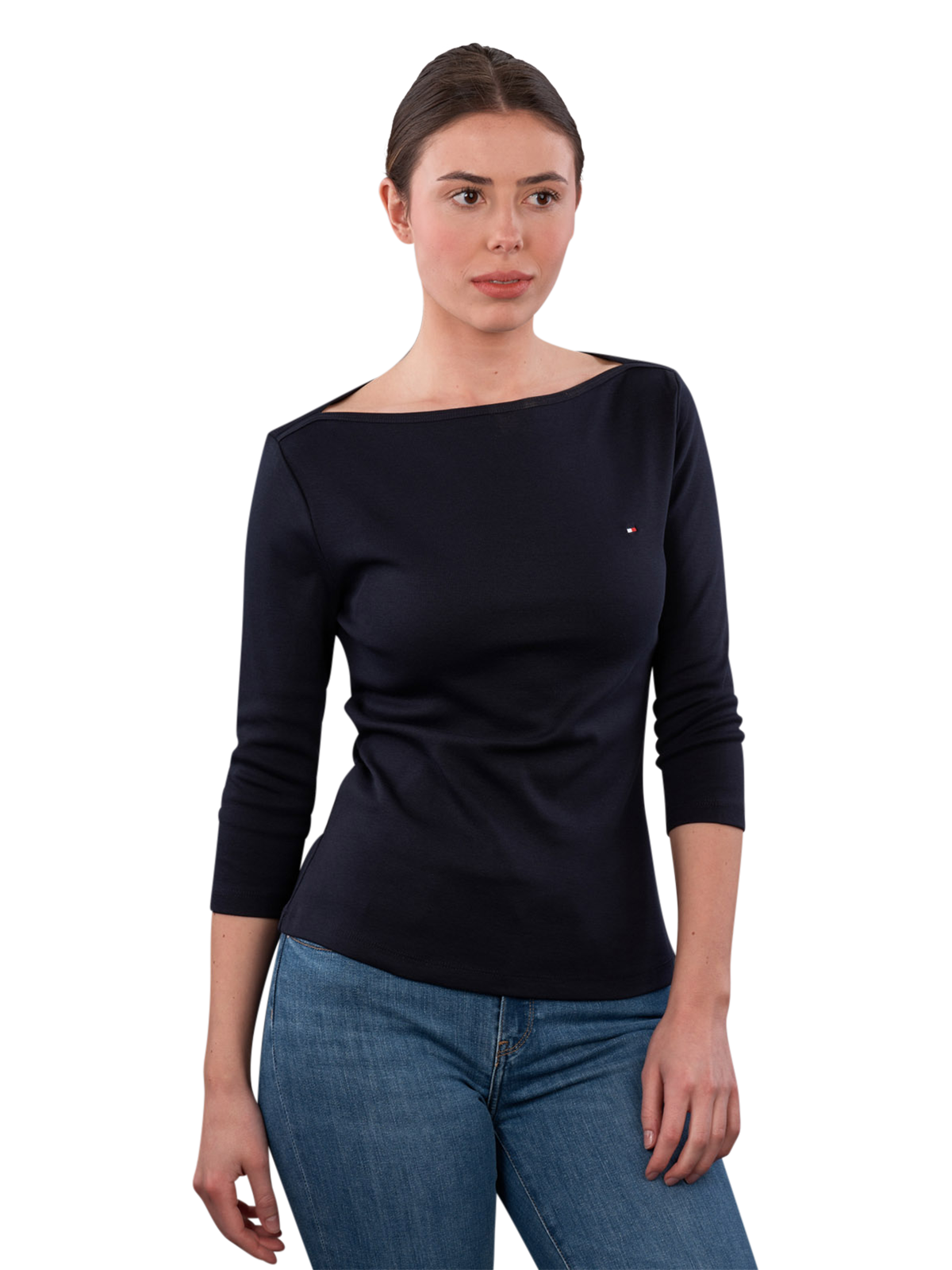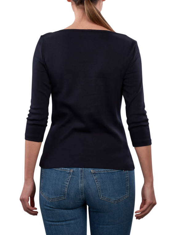 Le T-shirt Tommy Hilfiger Cody à manches 3/4 en bleu foncé offre un col bateau pour un look moderne. Fabriqué en 100 % coton, il assure un grand confort et une respirabilité. Le T-shirt est facile d'entretien et peut être lavé à 30 °C en cycle délicat. Il convient à diverses activités de loisirs et se combine de manière polyvalente.