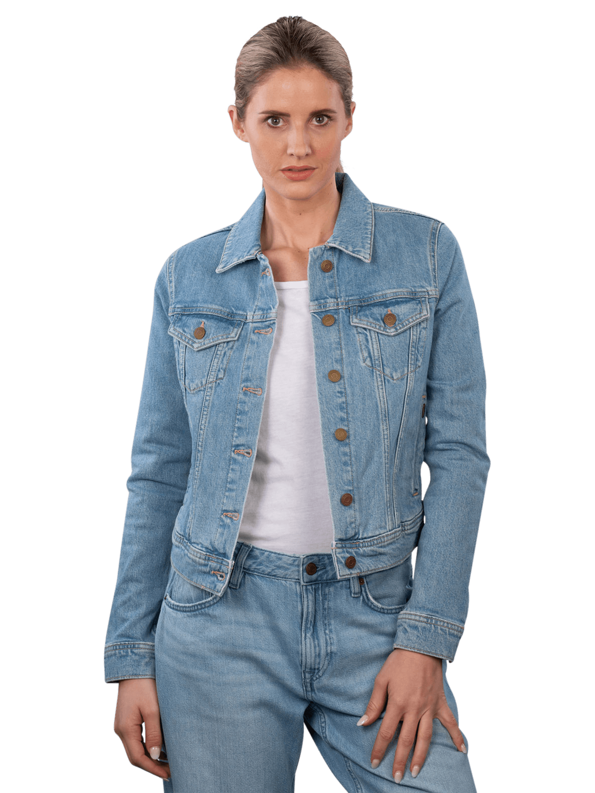 La veste en denim Pepe Jeans Slim Fit en bleu clair offre une coupe moderne sans capuche. Elle convient à diverses activités de loisirs et se combine de manière polyvalente. La veste est facile à entretenir et peut être lavée à 40°C en cycle normal. Avec son design intemporel et sa coupe confortable, elle est un ajout pratique à toute garde-robe.