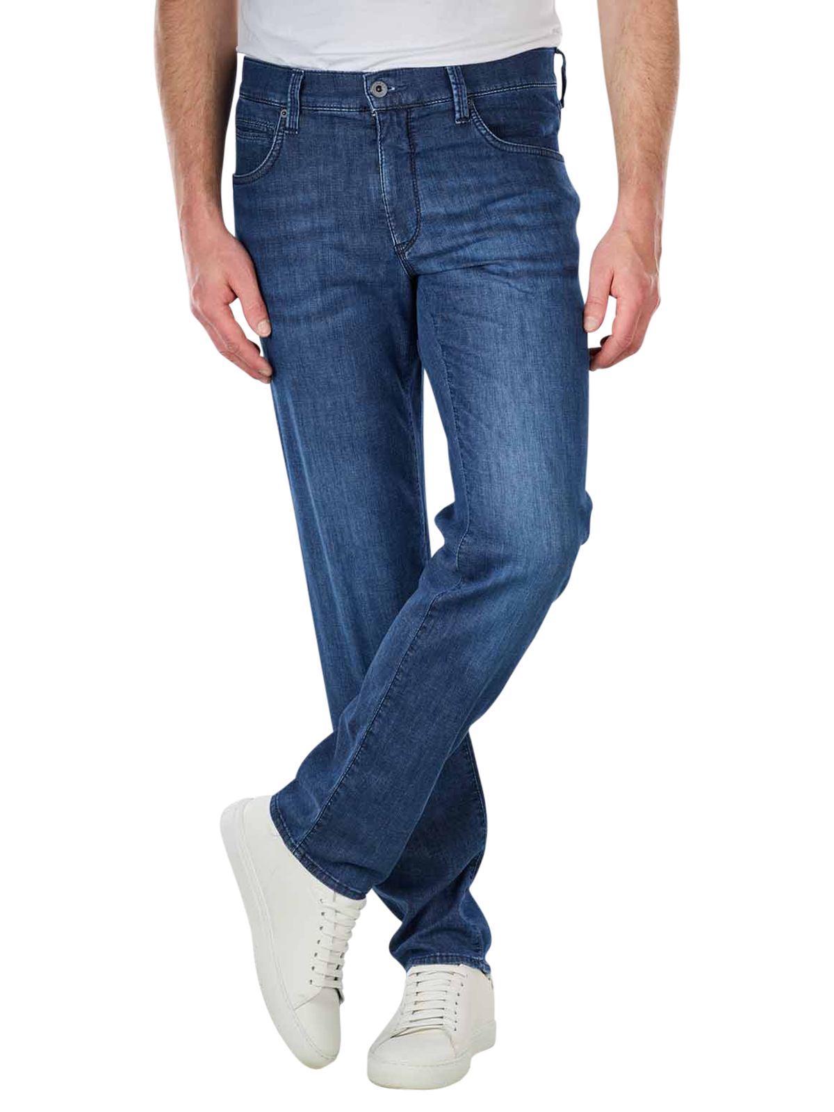 Le lavage attractif avec le coloris Atlantic Sea Used est frappant et assure un style décontracté. Les poches arrière basses de ce jeans straight fit avec une part de stretch assurent une silhouette idéale. Le matériau a été produit dans le respect de l'environnement sur la base du programme Eco BLUE PLANET. Le jean 5 poches a une taille moyenne, des cuisses droites et une coupe de jambes droite.