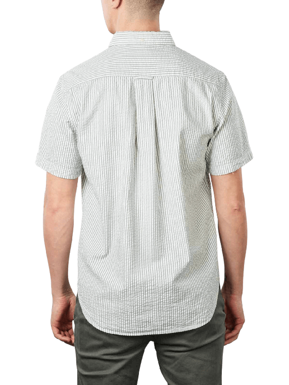 La chemise Regular Shirt Seersucker de Gant est une chemise décontractée pour homme à manches courtes avec une poche poitrine sur laquelle le logo de la marque est discrètement visible. Cette chemise à fines rayures, facile d'entretien, est très confortable à porter et dispose d'un col button-down. Cette chemise de couleur Kalamata Green permet de s'habiller confortablement en de nombreuses occasions, au travail comme pendant les loisirs.