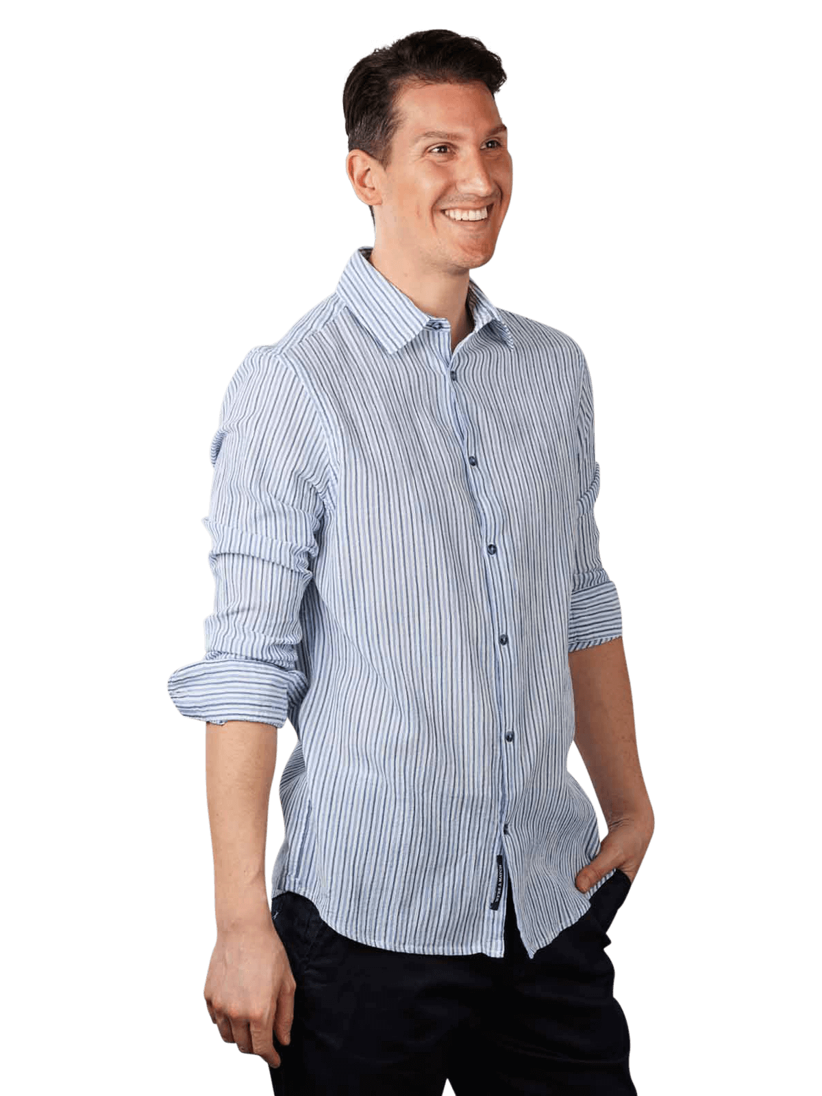 La chemise Stripes And Check de Scotch & Soda Regular Fit est une chemise décontractée pour homme qui permet d'être bien habillé en de nombreuses occasions, au quotidien comme pendant les loisirs. Cette chemise à rayures discrètes, à manches longues et col Kent, n'a pas de poche et est fabriquée à 100% en coton biologique. Le logo est discrètement visible sur la chemise pour homme de couleur Light Blue.