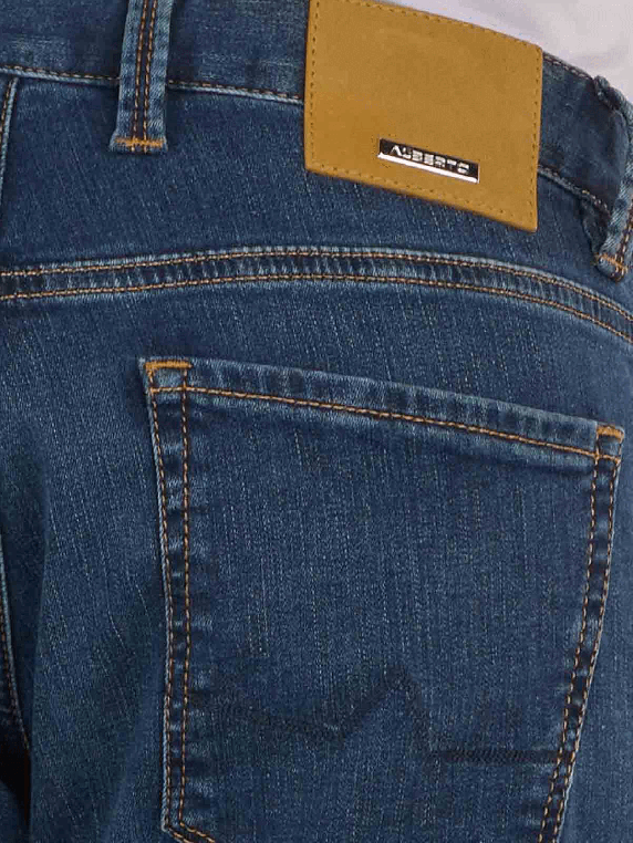 Le jeans Super Stretch Dual FX Pipe Regular Slim Fit d'Alberto en Dark Blue convainc par son chic décontracté parfait. Avec sa coupe unique à cinq poches, qui combine le straight et le slim, il offre une coupe confortable grâce à une hauteur de taille moyenne et une cuisse droite. Le tissu fin composé de 92 % de coton, 6 % d'élastomultiester et 2 % d'élasthanne garantit une extensibilité optimale. Certifié STANDARD 100 par OEKO-TEX, ce jeans pour homme allie style, confort et respect de l'environnement.