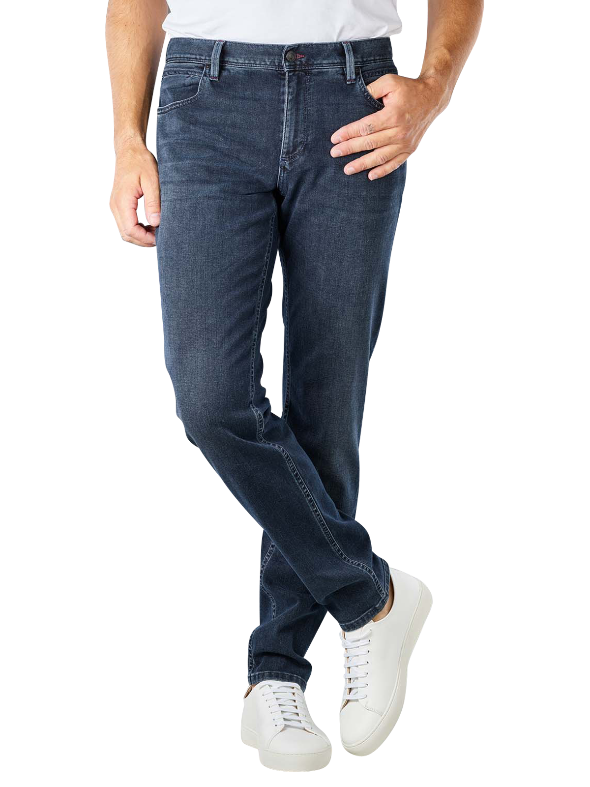 Les poches arrière légèrement basses flattent toutes les silhouettes. Le jean cinq poches convainc par son délavage particulier. La part de stretch agréable permet une assise confortable toute la journée, que ce soit pour le travail ou les loisirs. La coupe tapered à la mode est droite sur la cuisse. La coupe des jambes est étroite et assure une allure forte et tendance. Un jean basique comme on ne peut pas en trouver mieux.