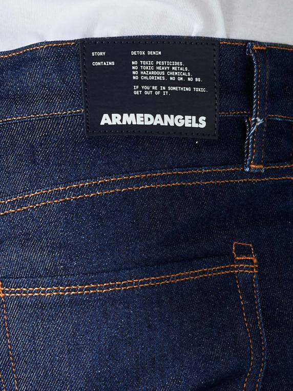 Le jeans Jaari Slim Fit d'Armedangels est un jeans cinq poches ajusté avec des surpiqûres de couleur contrastée. Le jean avec une part de stretch, une hauteur de taille normale et des jambes étroites se ferme avec un bouton et une fermeture éclair. Il doit être lavé à 40 °C sur un cycle délicat. L'entreprise Armedangels fabrique ses jeans selon les directives strictes du programme Eco & Fair. Seul du coton biologique issu de la culture durable et du commerce équitable est utilisé pour la fabrication.