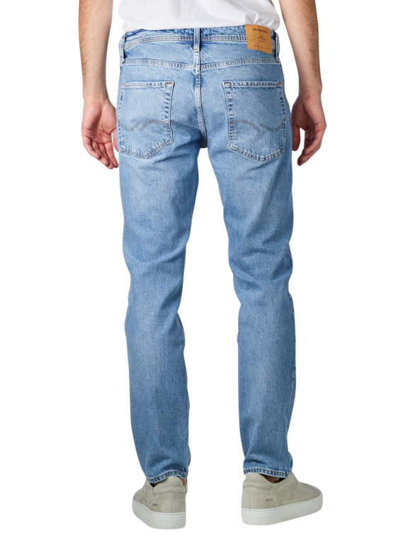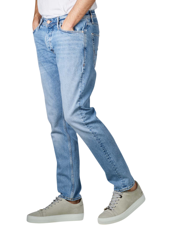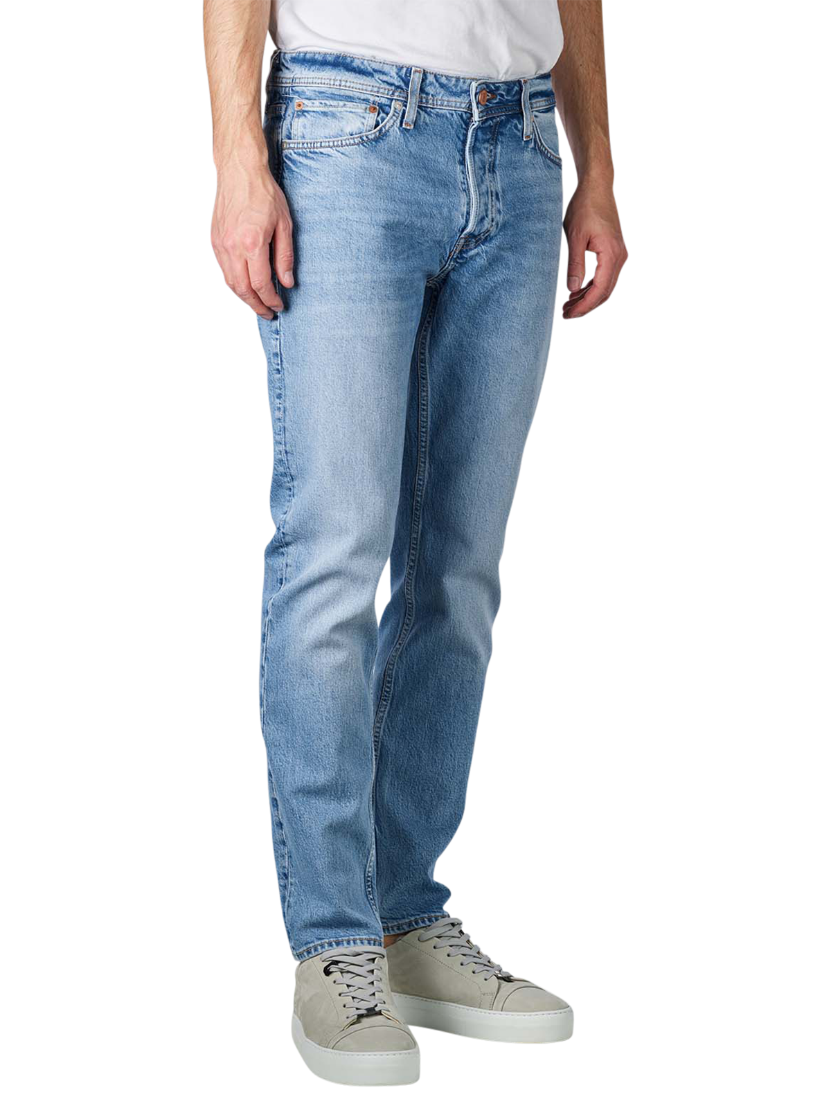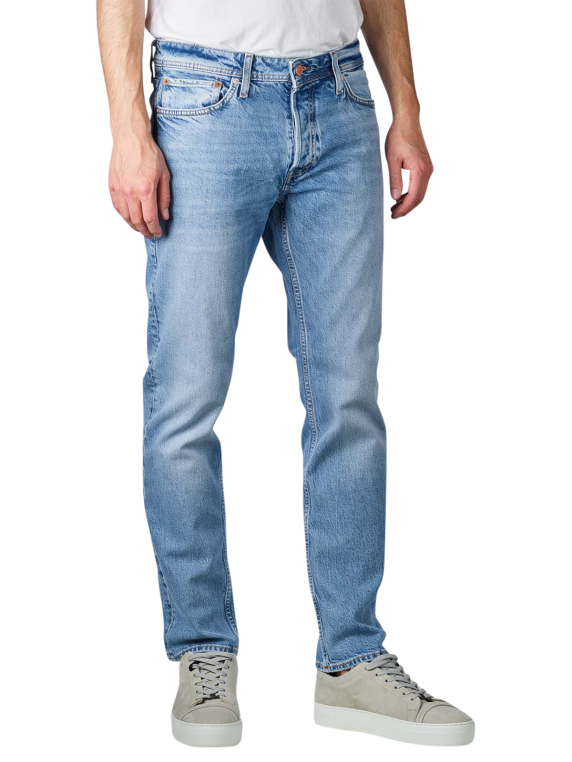 Le jeans Tim de Jack & Jones Slim Fit a des délavages modernes et un beau ton denim clair. Il a une coupe droite et une coupe slim. La cuisse est droite et l'échancrure des jambes est étroite et droite. La taille du jeans Jack & Jones Tim Slim Fit est moyennement haute. Le jeans est de style cinq poches et possède une patte de boutonnage.