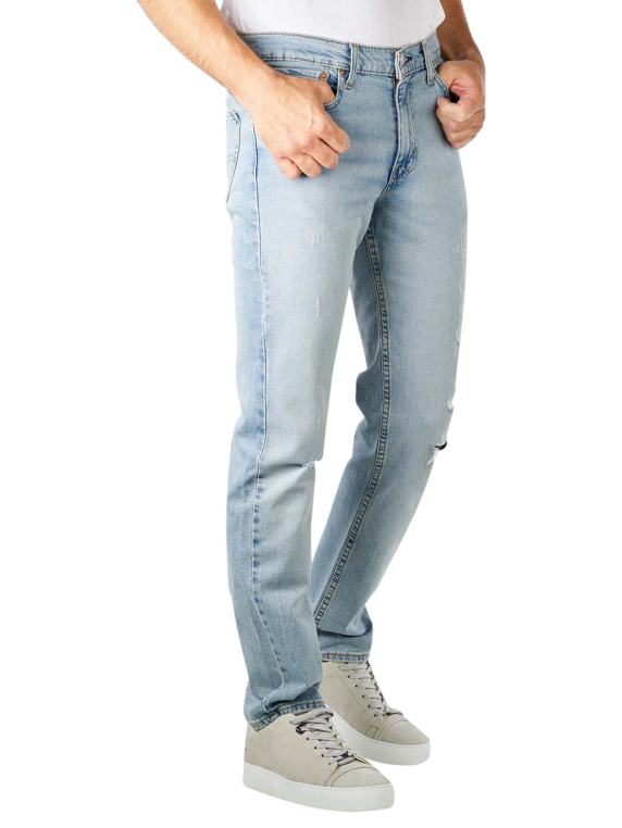 Le Levi's Slim Fit, clair et attrayant, se ferme avec une fermeture éclair. Le mélange de matières assure un grand confort. Le jeans est composé de 70 % de coton, 28 % de lyocell et 2 % d'élasthanne. Un jean cinq poches qui convainc sur toute la ligne avec une taille moyenne. Le slim fit a des cuisses droites et une coupe de jambe droite.