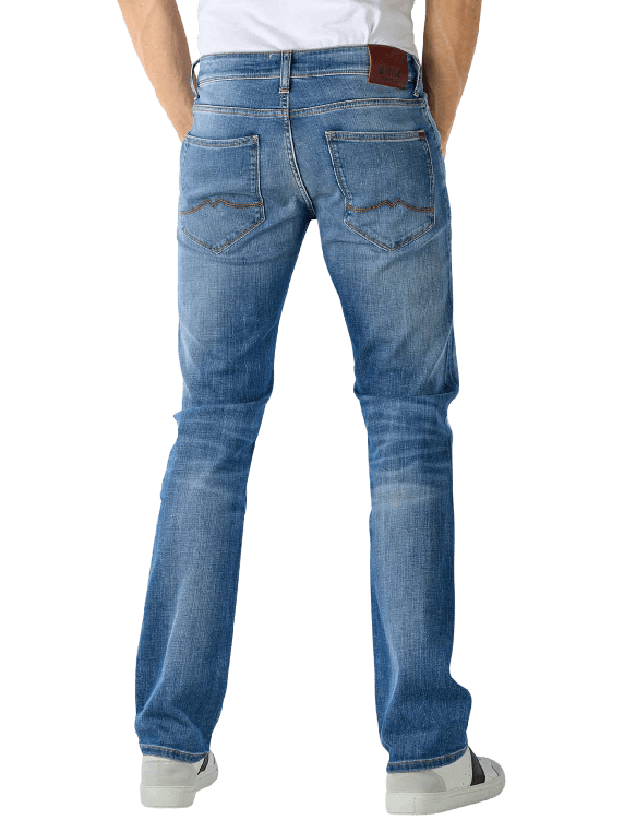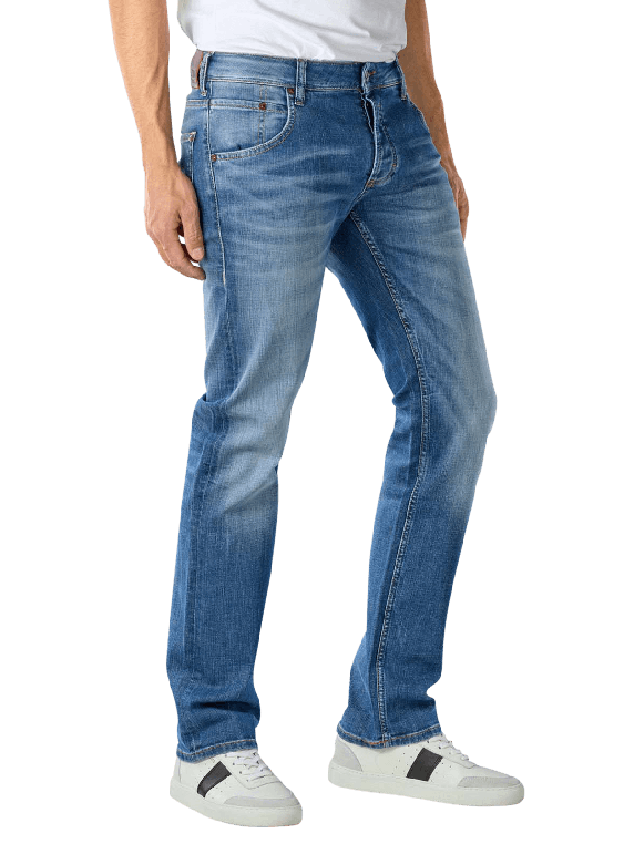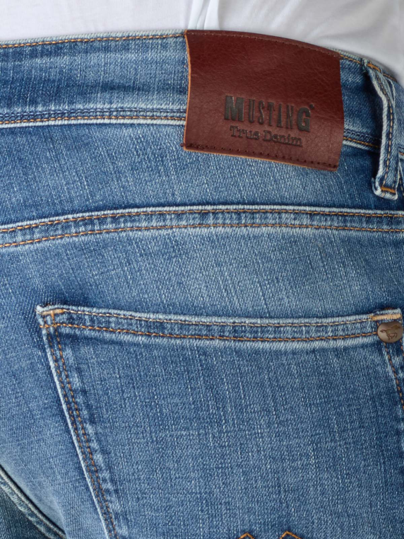Le jean Mustang Michigan Straight vintage rinse washed séduit par sa coupe droite et son délavage très marqué sur les fesses et les genoux. Ce pantalon saccorde aisément avec tout type de tenue et est idéal pour afficher un look classique.