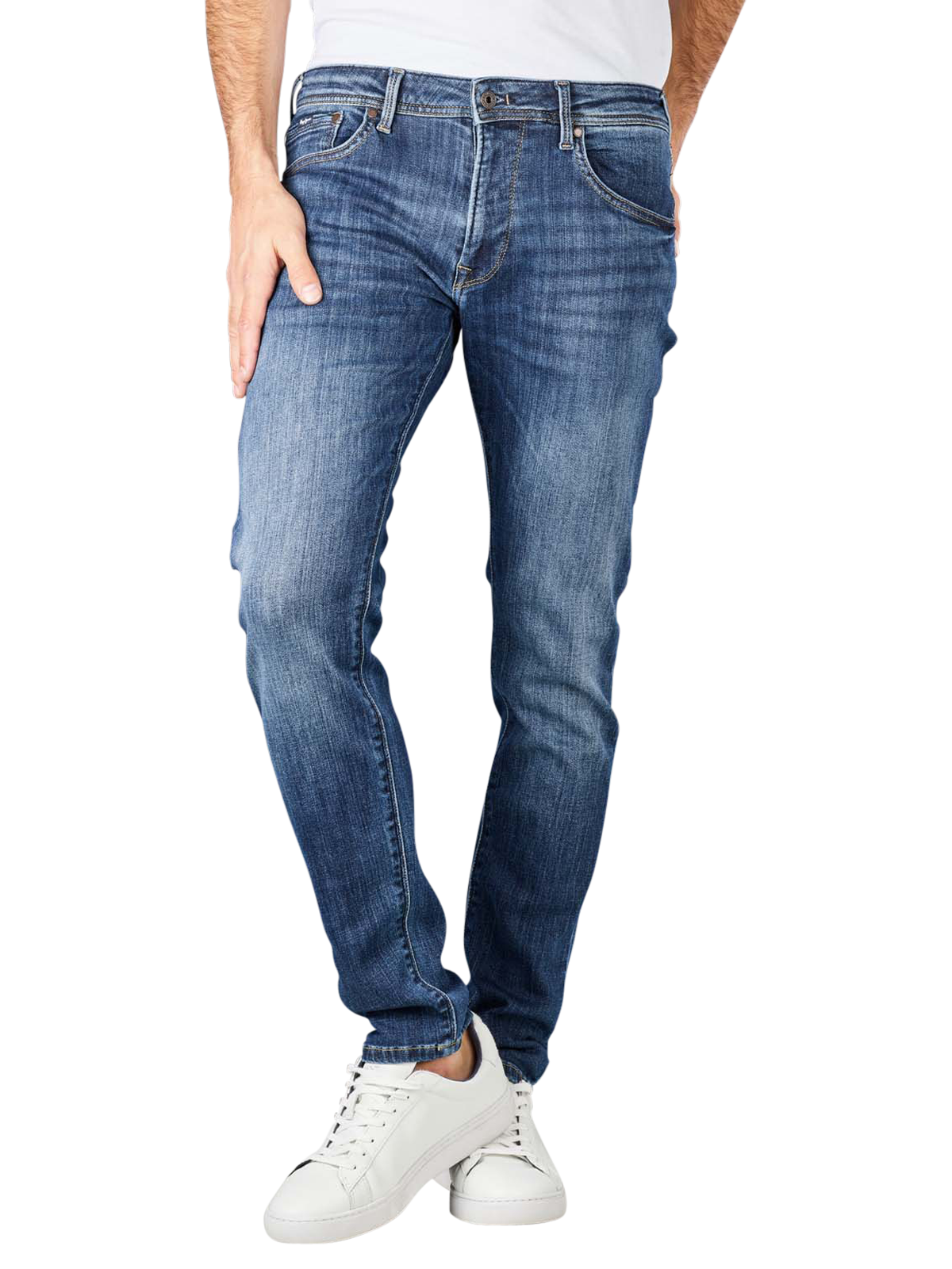Le jeans Stanley Tapered Fit de Pepe Jeans se distingue par ses délavages prononcés. Le jean pour hommes Stanley Tapered Fit de Pepe Jeans se présente dans une coupe étroite et un style 5 poches. La composante stretch assure un important confort de port. Les cuisses et l'arrière des genoux sont décorés d'effets crinkle. Les logos de la marque Pepe Jeans ont été appliqués à l'arrière de la ceinture et sur la poche monnaie.