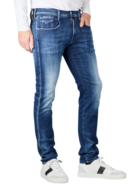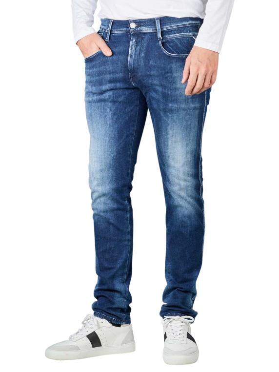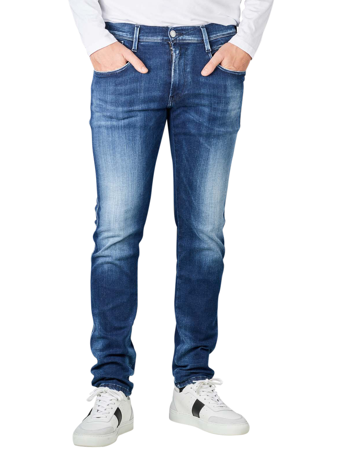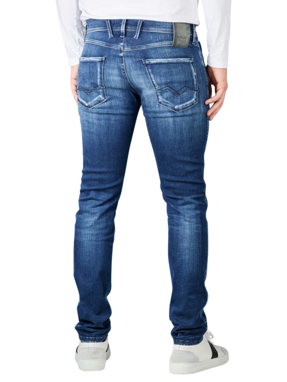 Avec le chic Anbass Slim Fit Jeans du programme Replay Eco, vous ne prenez pas seulement soin de votre look, mais aussi de lenvironnement. Lépaisseur standard du tissu et la juste mesure de matière extensible offrent une sensation très confortable lors du port. Le look usé décontracté de ce jean à cinq poches est soigneusement marqué par de jolis effets froissés. Pour un look idéal au quotidien.