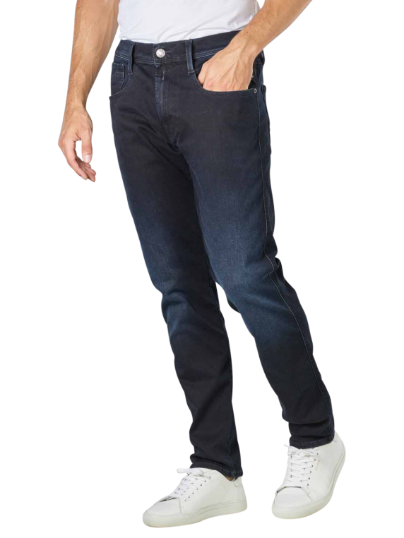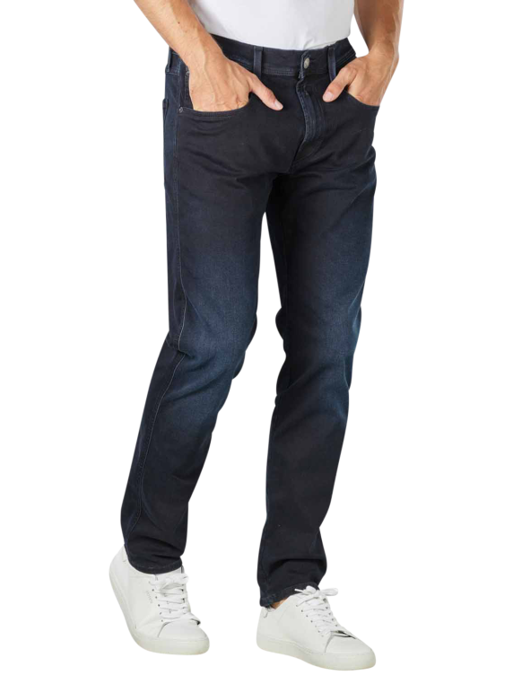 Le jeans Replay Anbass Slim Fit dans la couleur Dark Blue est fabriqué à partir d'un mélange de coton recyclé avec une part de stretch et est très tendance avec son look classique à cinq poches, sa taille moyenne et ses jambes étroites. Son design stylé est complété par des lavages discrets et une application en cuir véritable à la taille. De plus, ce jean pour homme se nettoie facilement à 30 °C en cycle délicat et peut être séché à l'ombre sur un fil.