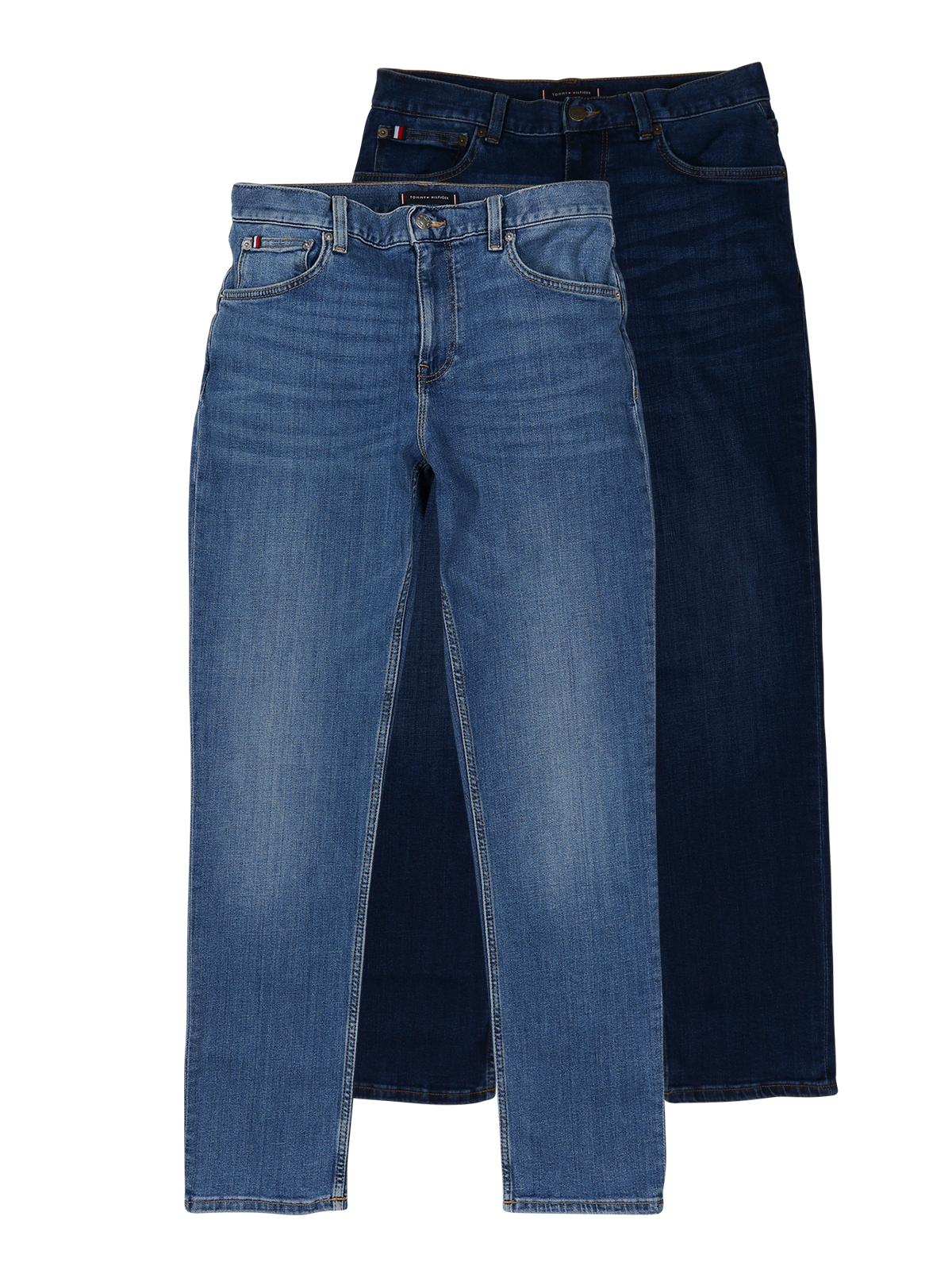 Le Tommy Hilfiger Denton Jeans Straight 2-Pack pour hommes propose deux pantalons polyvalents d'un bleu léger et foncé. La coupe droite des jambes et la taille moyenne assurent un confort optimal. Fabriqués à partir de matériaux recyclés contenant 94% de coton, 4% d'élastomultiester et 2% d'élasthanne, les jeans offrent un mélange parfait de confort et d'élasticité. Pratique avec son style cinq poches et sa fermeture éclair, il est idéal pour le quotidien. Facile d'entretien, lavable à 30°C.
