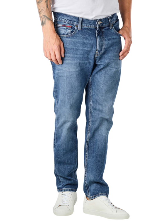 Le jeans Tommy Ryan Straight Fit de couleur Denim Medium possède ce style de jeans délavé simple. Le jeans se ferme avec une fermeture éclair. Le pourcentage de stretch de 1 % assure une tenue parfaite tout au long de la journée. La coupe droite a des cuisses droites et une encolure droite. Outre le stretch, le jean est fabriqué à partir de 99 % de coton de qualité supérieure.