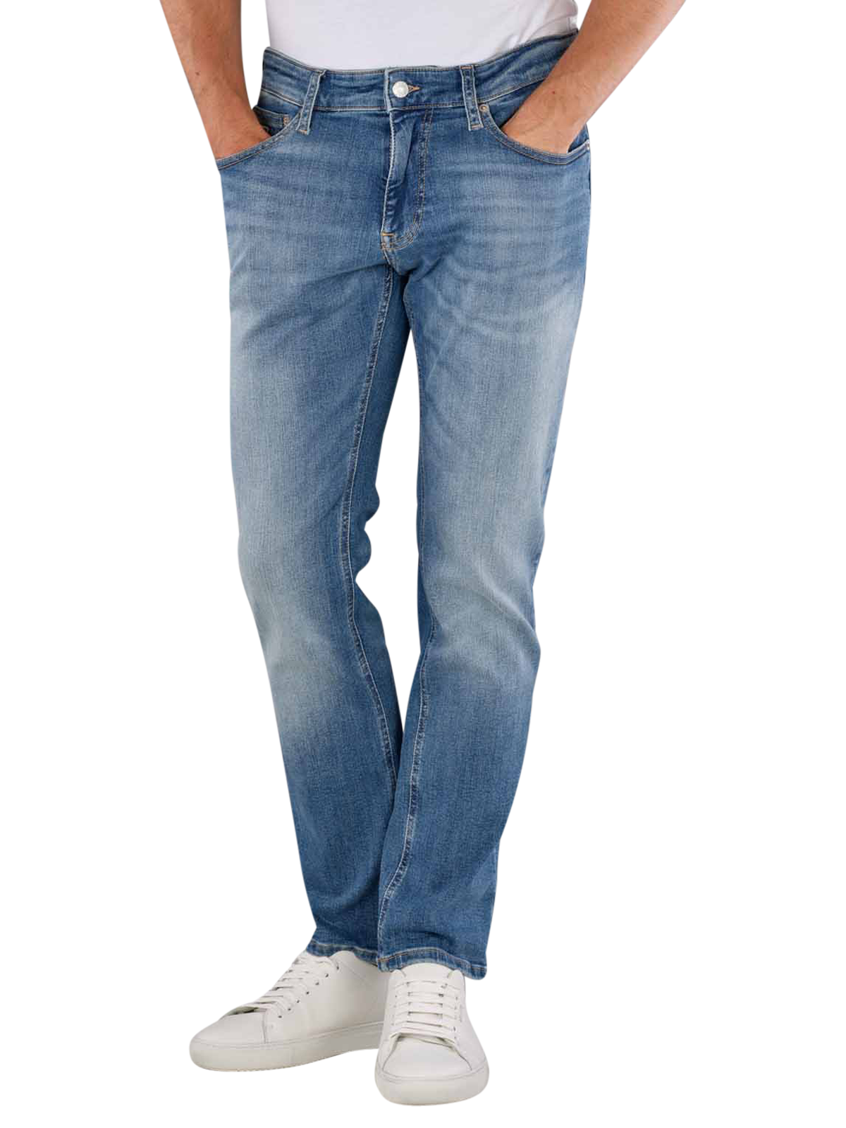 Les jeans Tommy Jeans Scanton Slim Fit pour hommes sont bleu clair et ont une taille moyenne avec une coupe de jambe étroite à droite. La coupe est conçue comme slim fit, le tissu a une épaisseur standard et contient des parties stretch pour un confort supplémentaire. Le pantalon à cinq poches est doté d'une fermeture à glissière et d'un délavage clair. Le tissu est composé de 92% de coton, 6% de polyester et 2% d'élasthanne.