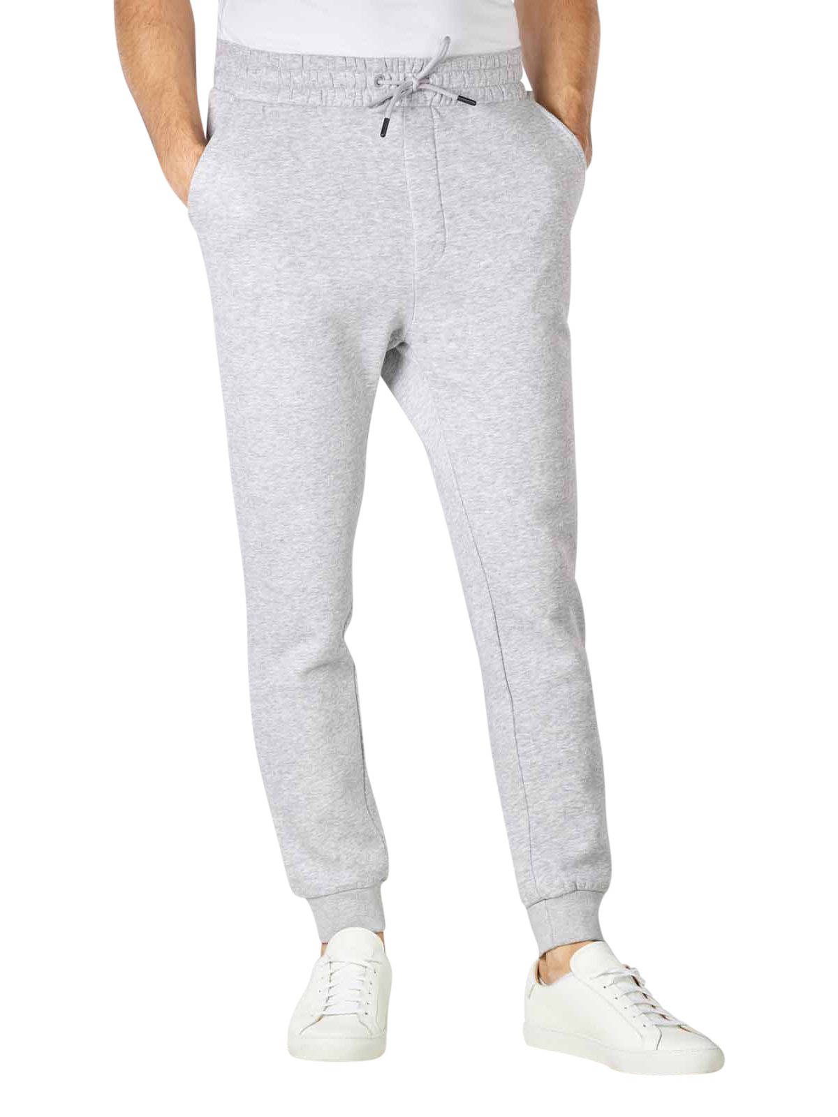 Le pantalon de jogging souple gris clair avec élastique complète le look décontracté toujours aussi tendance. Le pantalon est doté d'une taille moyenne, de cuisses droites et d'une coupe de jambes qui va en s'amincissant. Le mélange optimal de matières est composé de 61 % de polyester et de 39 % de coton. La coupe droite est à la fois décontractée et ajustée.