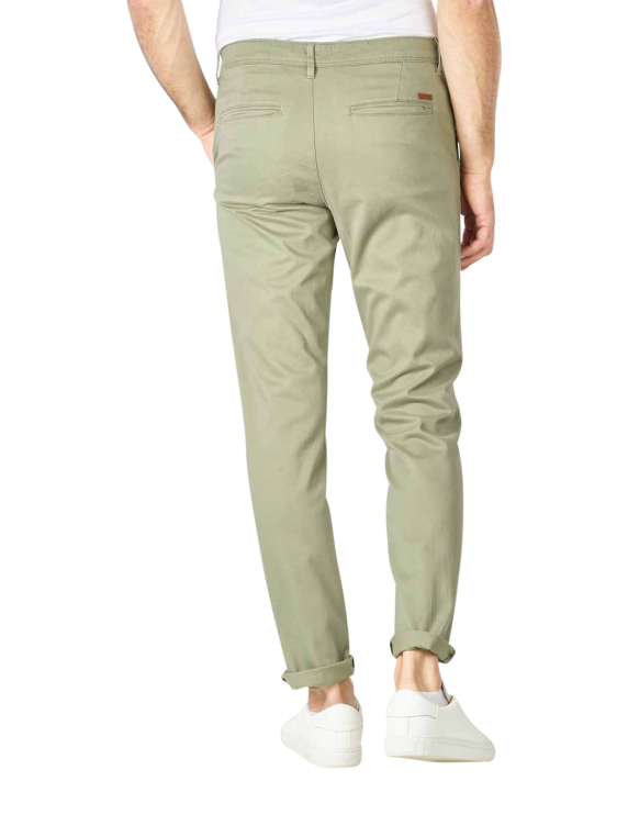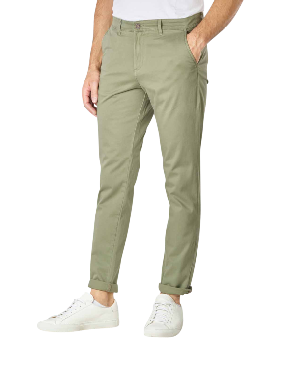 Le chino Marco Bowie Slim Fit de Jack & Jones dans la teinte Deep Lichen Green a une taille moyenne et des jambes étroites et droites qui soulignent la silhouette. Il est fabriqué dans un tissu de coton doux avec une petite quantité de stretch et offre une coupe agréable et un grand confort. De plus, il est lavable à 40 ¡C en cycle normal et convient au sèche-linge, ce qui le rend facile à nettoyer.