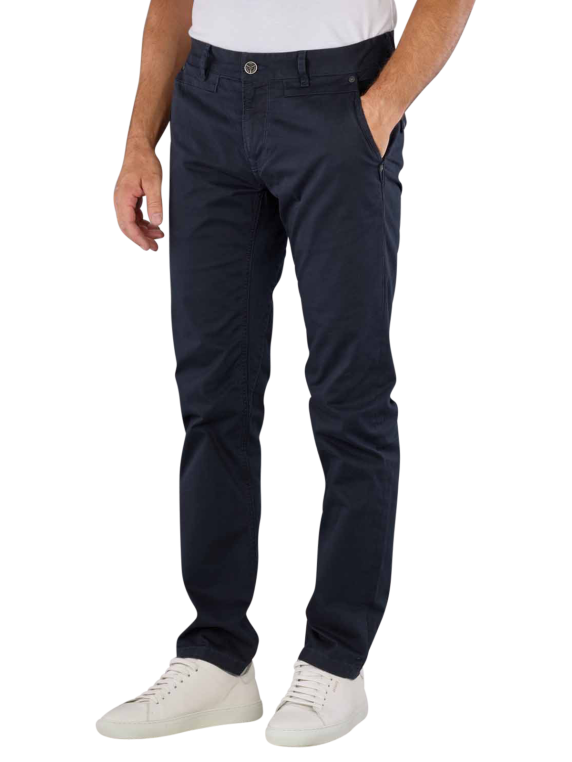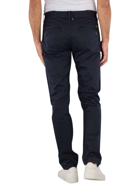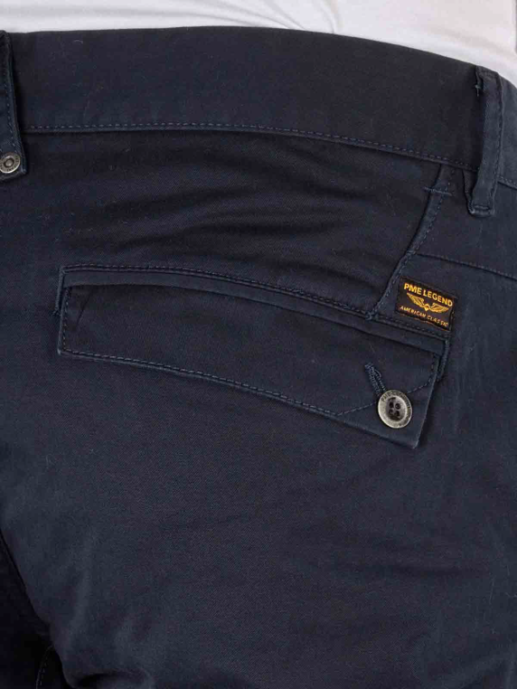 Le PME Legend American Classic Chino est un pantalon pour hommes en bleu foncé avec une coupe de jambe étroite et une hauteur de taille moyenne. Il a une coupe tapered fit et est composé de 97% de coton et de 3% d'élasthanne, ce qui lui confère une certaine élasticité. Le tissu a une épaisseur standard et se ferme par une fermeture à glissière. Ce chino est lavable en machine à 30 degrés et ne doit pas être blanchi.
