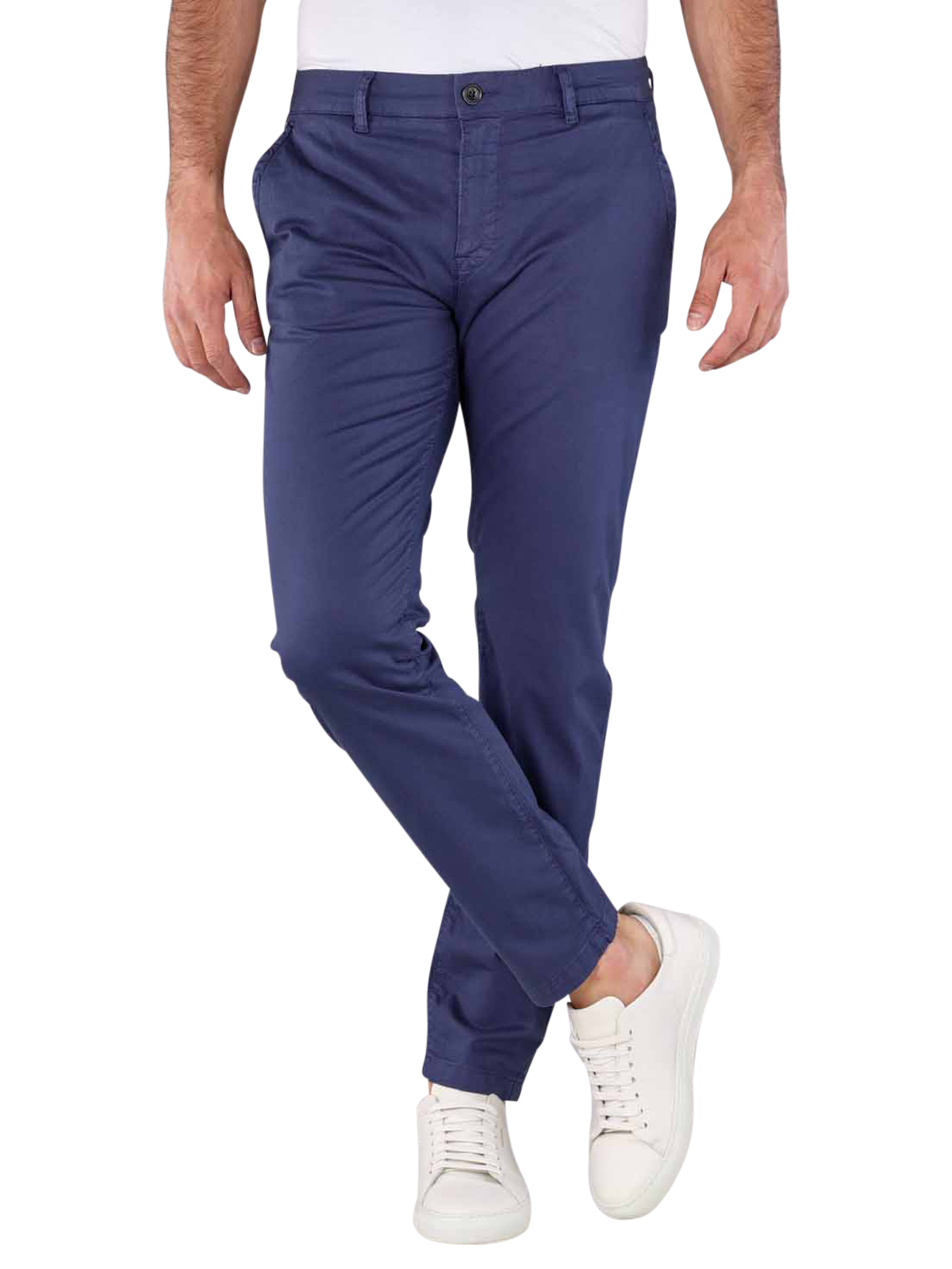 Le chino Scotch & Soda Mott à la coupe super slim est de couleur marine et combine une coupe étroite avec une hauteur de taille moyenne, des poches latérales et des poches passepoilées au niveau des fesses, typiques des chinos. Il est fabriqué dans un mélange de coton fin et merveilleusement doux avec une part de stretch et offre un port confortable malgré des jambes droites et étroites. Ce pantalon pour hommes est lavable à 30 °C sur un cycle normal.