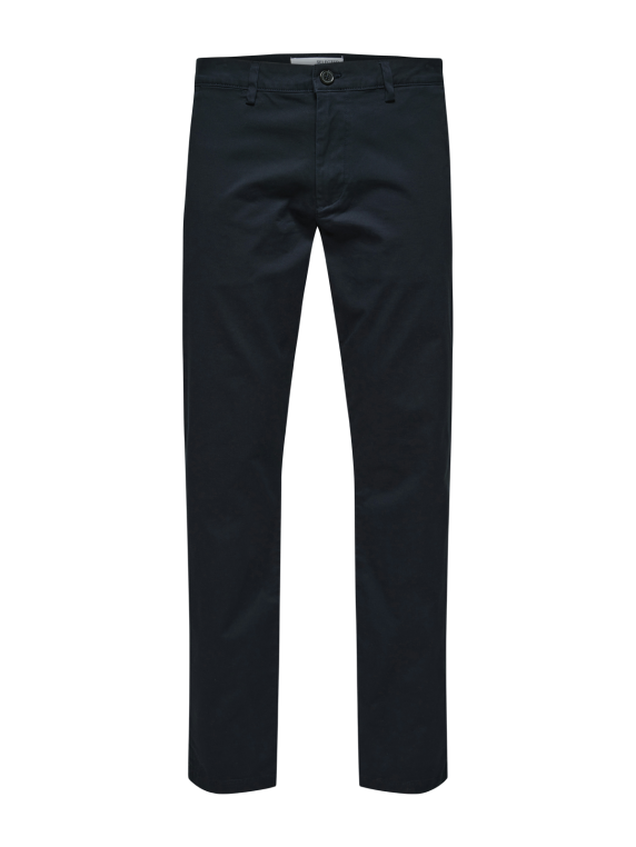 Le Selected New Miles Chino Slim Fit en bleu foncé est un pantalon stylé pour hommes, idéal pour un look moderne. Avec une coupe de jambe fine et droite et une hauteur de taille moyenne, il offre un grand confort grâce à sa part de stretch. Fabriqué en tissu fin avec du coton bio, ce chino est durable et agréable à porter. La fermeture éclair permet de l'enfiler facilement et son entretien ne pose aucun problème à 40°C sur un cycle de lavage normal.