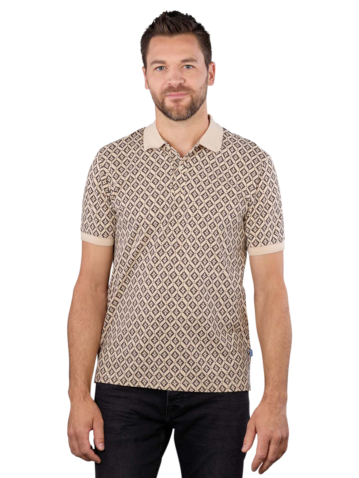 Le polo Scotch & Soda Allover Print en beige est idéal pour les hommes. Ce polo allie un design élégant à un grand confort. Il est composé à 100% de coton et dispose d'un col polo classique. La coupe Regular Fit assure une coupe confortable. Pour l'entretien, un cycle de lavage normal à 30°C est recommandé. Il convient d'éviter le blanchiment afin de préserver la qualité du tissu.