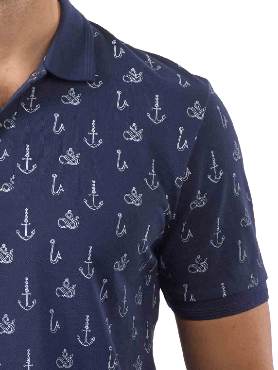 Le Scotch & Soda Mini Allover Print Polo Short Sleeve est un haut à manches courtes original pour les hommes à la mode dans la couleur marine. Sur ce polo sans poche, le col et les poignets unis se distinguent de l'imprimé maritime blanc. Le logo de la marque Scotch & Soda est discrètement visible sur ce polo 100 % coton.