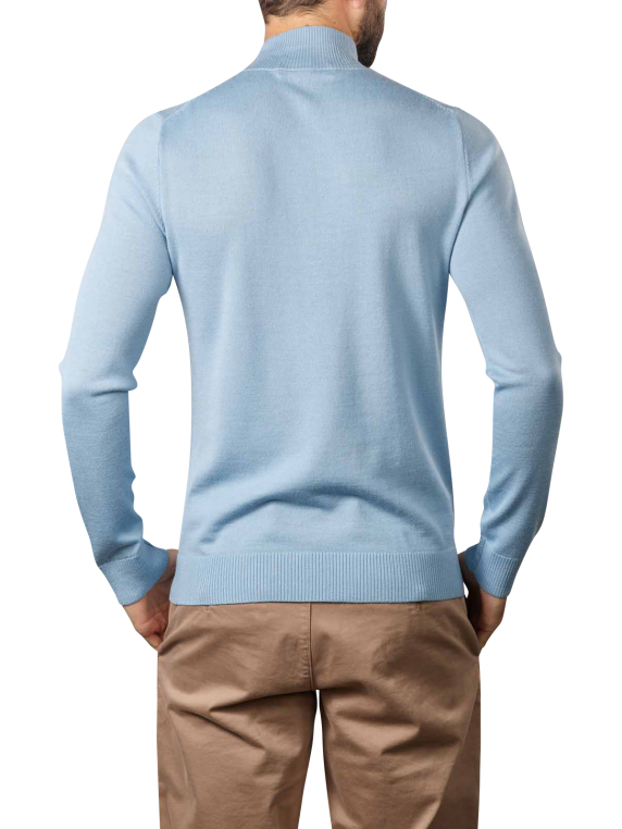 La marque fraîche Drykorn se concentre sur la mode business abordable pour elle et lui. Le pull bleu clair Drykorn Turtle Neck Watson Fine Knit se porte à merveille comme pull de costume. Bien que le pull soit 100% en laine vierge, il donne l'impression d'être en soie. Les poignets sont soigneusement travaillés et larges, ce qui augmente encore le confort de port.