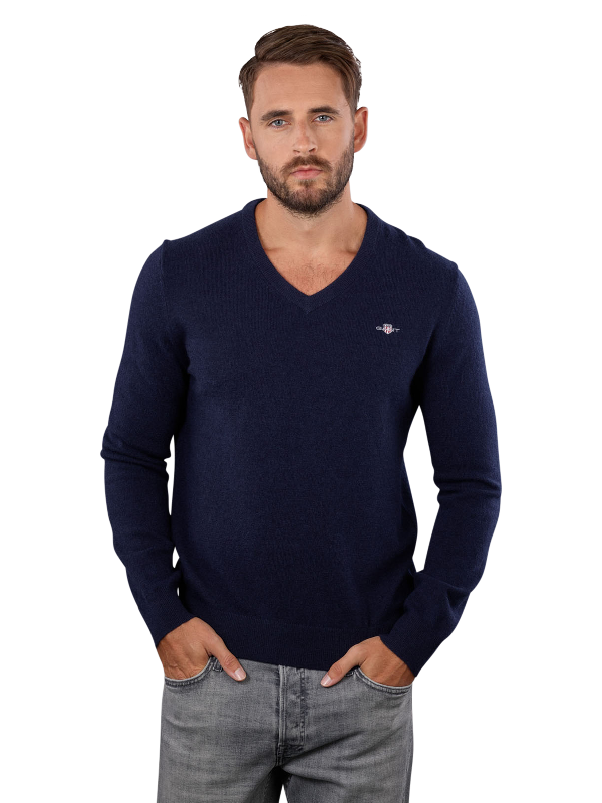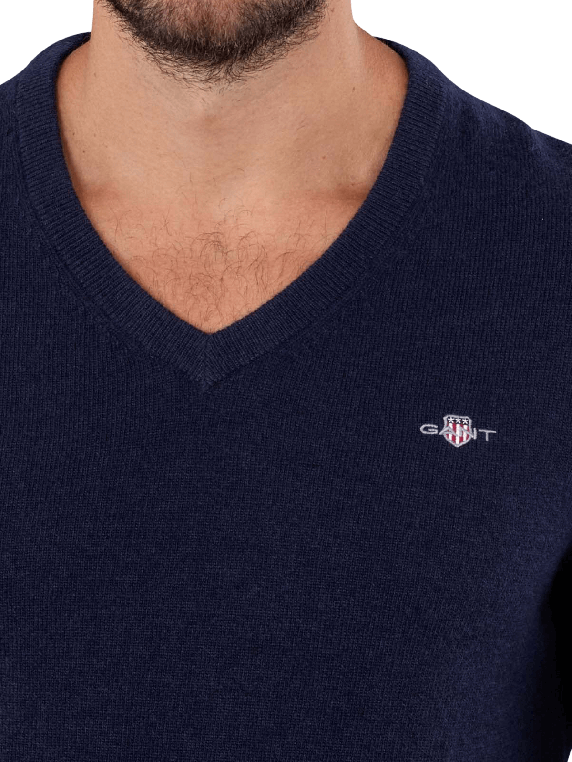 Le pull-over Gant Lambswool en marine est un élégant pull-over à col en V pour hommes. Il séduit par sa finition de haute qualité composée de 90% de laine et de 10% de polyamide, qui assure chaleur et confort. La coloration bleue foncée confère au pull une esthétique intemporelle. Facile d'entretien grâce au lavage à la main, il se combine sans problème avec les loisirs ou le bureau. Un must-have dans toute garde-robe masculine, qui allie style et confort.