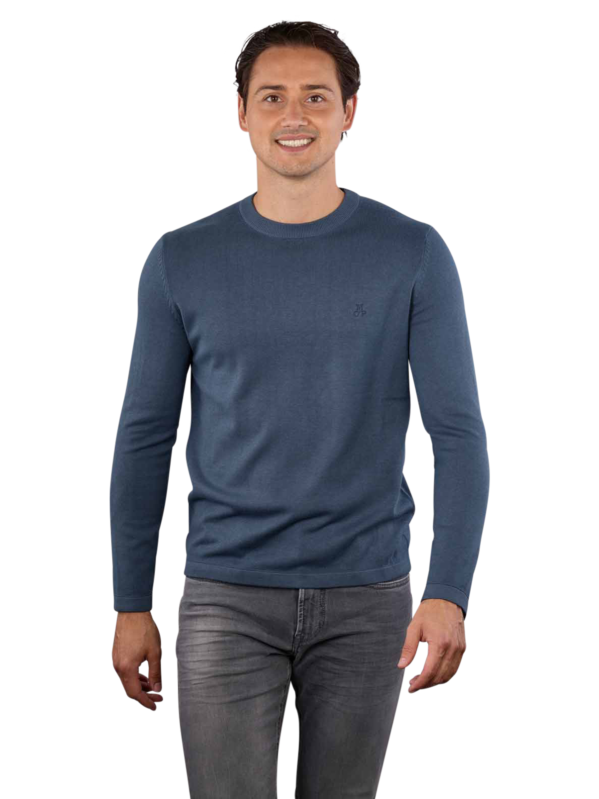 Le pull-over Crew Neck Moon Stone de Marc O'Polo pour hommes en bleu moyen offre un confort incomparable. Avec son col rond et un mélange de matières de haute qualité composé de 95% de coton et de 5% de cachemire, il allie style et commodité. Le pull est certifié GOTS et soutient la mode durable. Pour l'entretien, il est recommandé de le laver à la main et d'éviter le blanchiment. Parfait pour toutes les occasions, un basique intemporel dans chaque garde-robe.