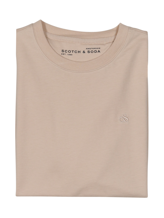 Ce t-shirt Scotch & Soda de couleur beige est uni. Il possède un logo discrètement visible sur le côté gauche de la poitrine et un col rond. La coupe Regular Fit est confortable et décontractée. Le t-shirt est fabriqué à partir de 100 % de coton biologique et est donc agréable sur la peau. Il peut être lavé à 30 degrés sur le cycle normal de la machine à laver.